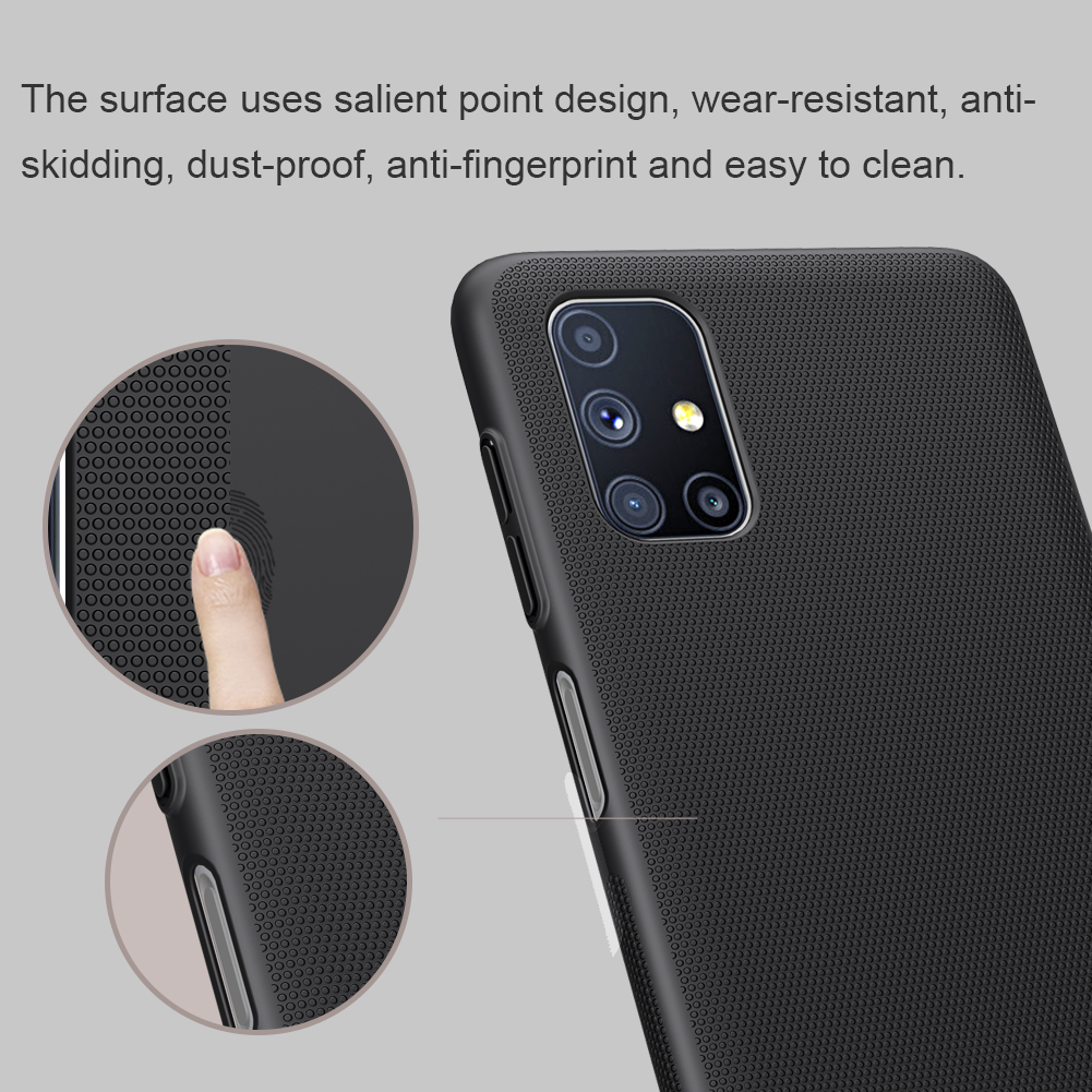 Тонкий чехол черного цвета от Nillkin серии Super Frosted Shield для смартфона Samsung Galaxy M51 изготавливается из экологичных материалов путем высокоточного литья под давление с высокой температурой.