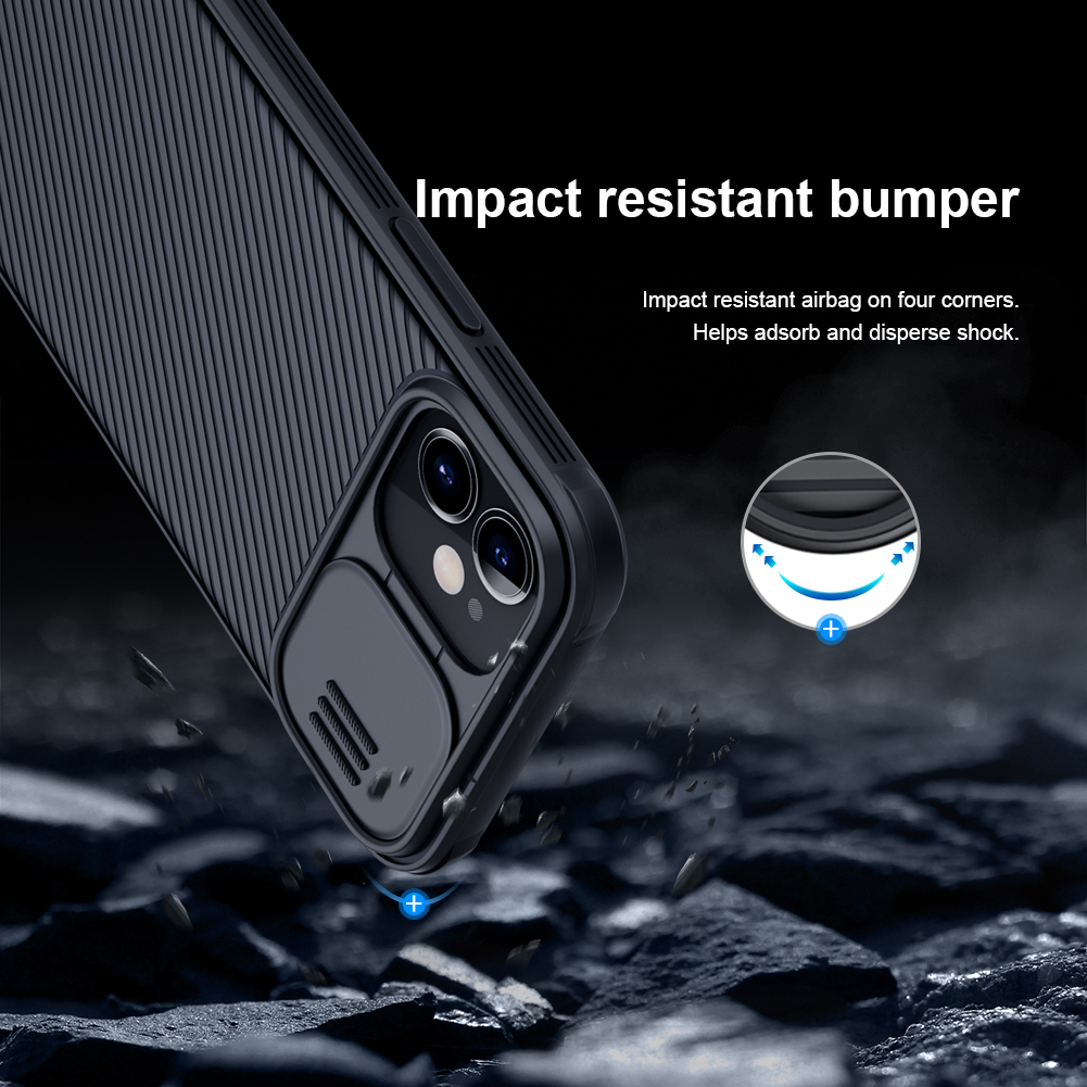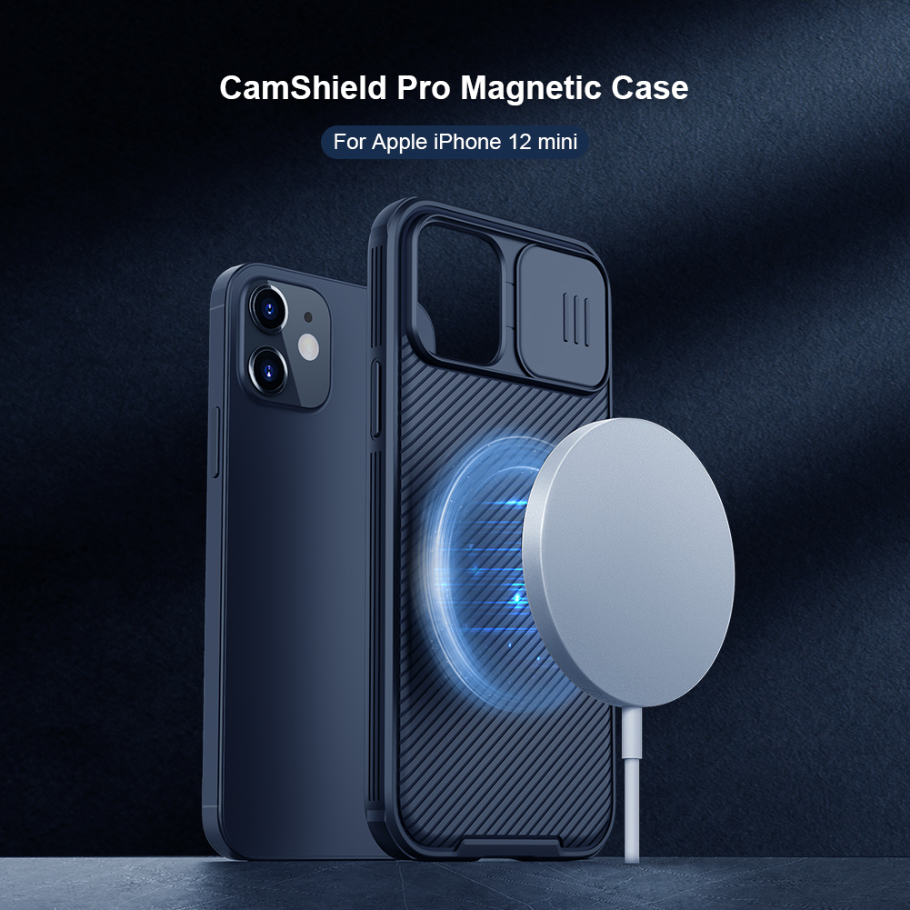 Противоударный чехол с защитной крышкой задней камеры и беспроводной зарядкой от Nillkin серии CamShield Pro Magnetic Case для iPhone 12 Mini.