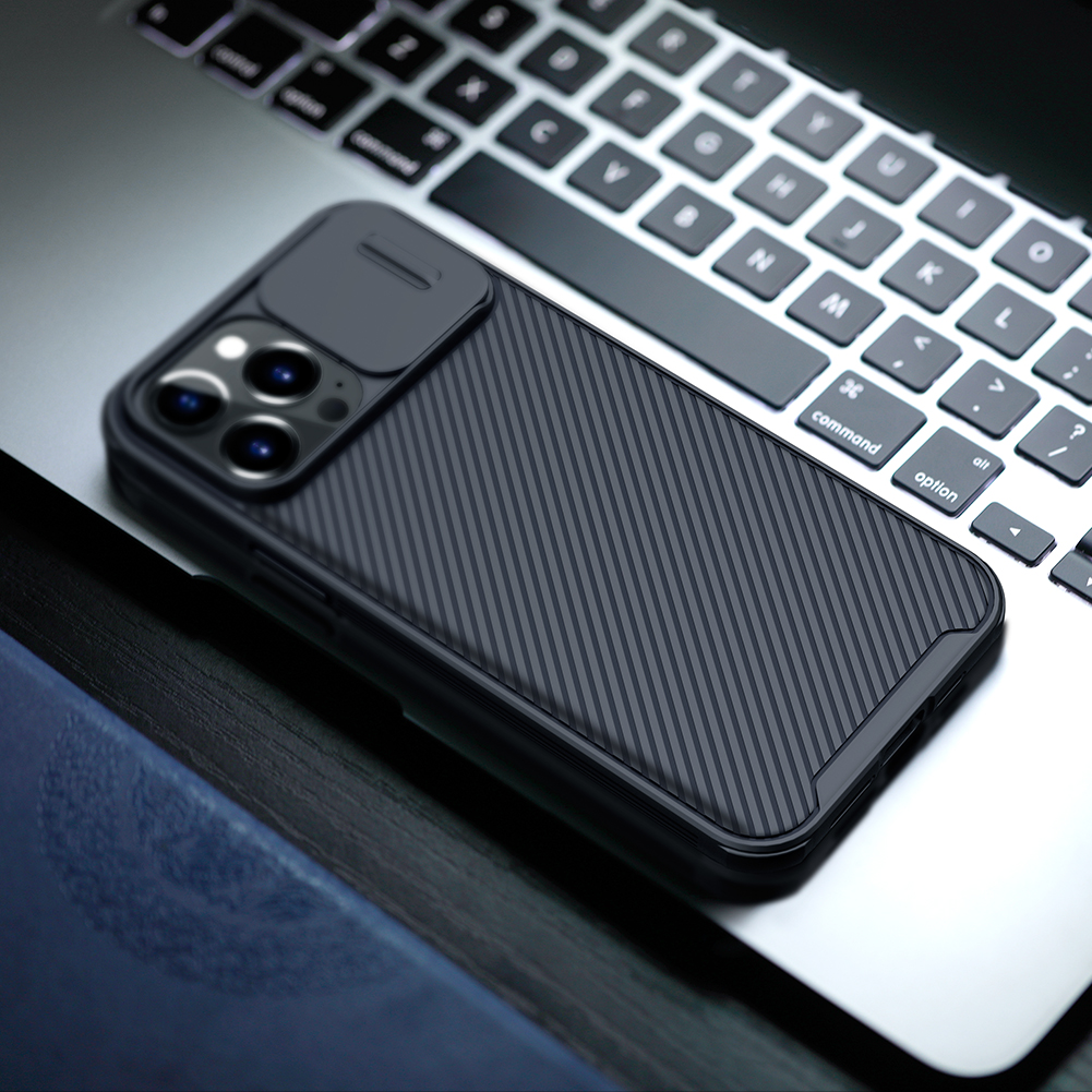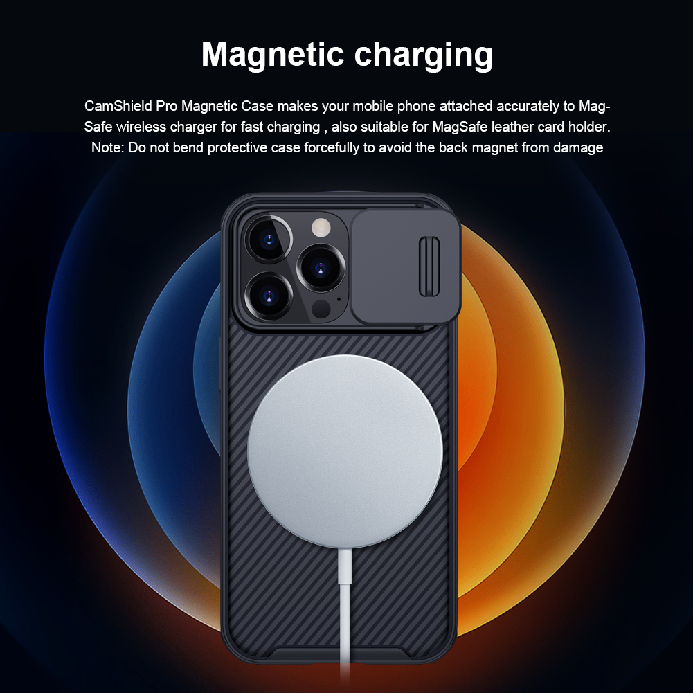 Противоударный чехол с защитной крышкой задней камеры и беспроводной зарядкой от Nillkin серии CamShield Pro Magnetic Case для iPhone 13 Pro.