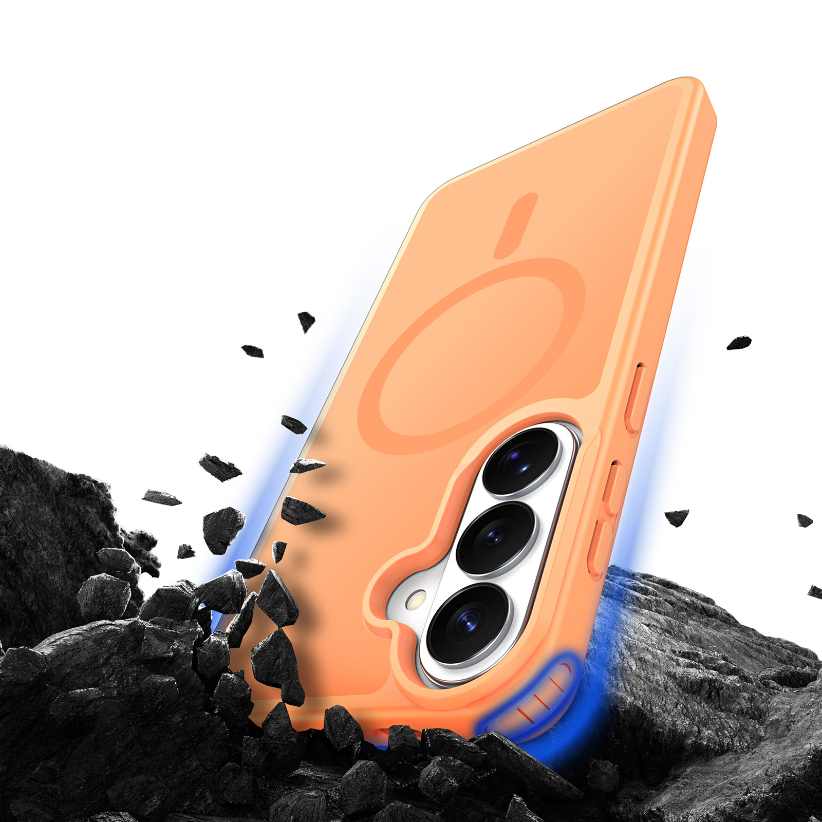 Чехол оранжевого цвета с поддержкой MagSafe для Samsung Galaxy S26 Plus из серии Yind Series от бренда Dux Ducis. Яркий и позитивный оранжевый оттенок чехла привлекает внимание и поднимает настроение владельцу устройства. Чехол совместим с технологией MagSafe, что обеспечивает удобное подключение магнитных аксессуаров и быструю беспроводную зарядку. Прочный материал чехла защищает смартфон от повреждений и царапин, сохраняя его внешний вид в идеальном состоянии. Тонкий и лёгкий дизайн не увеличивает габариты устройства, сохраняя его удобство в использовании. Точные вырезы для камер и кнопок обеспечивают полный доступ ко всем функциям смартфона. Чехол Yind Series от Dux Ducis - это отличный выбор для тех, кто ценит яркий дизайн, функциональность и качественную защиту для своего Samsung Galaxy S26 Plus.