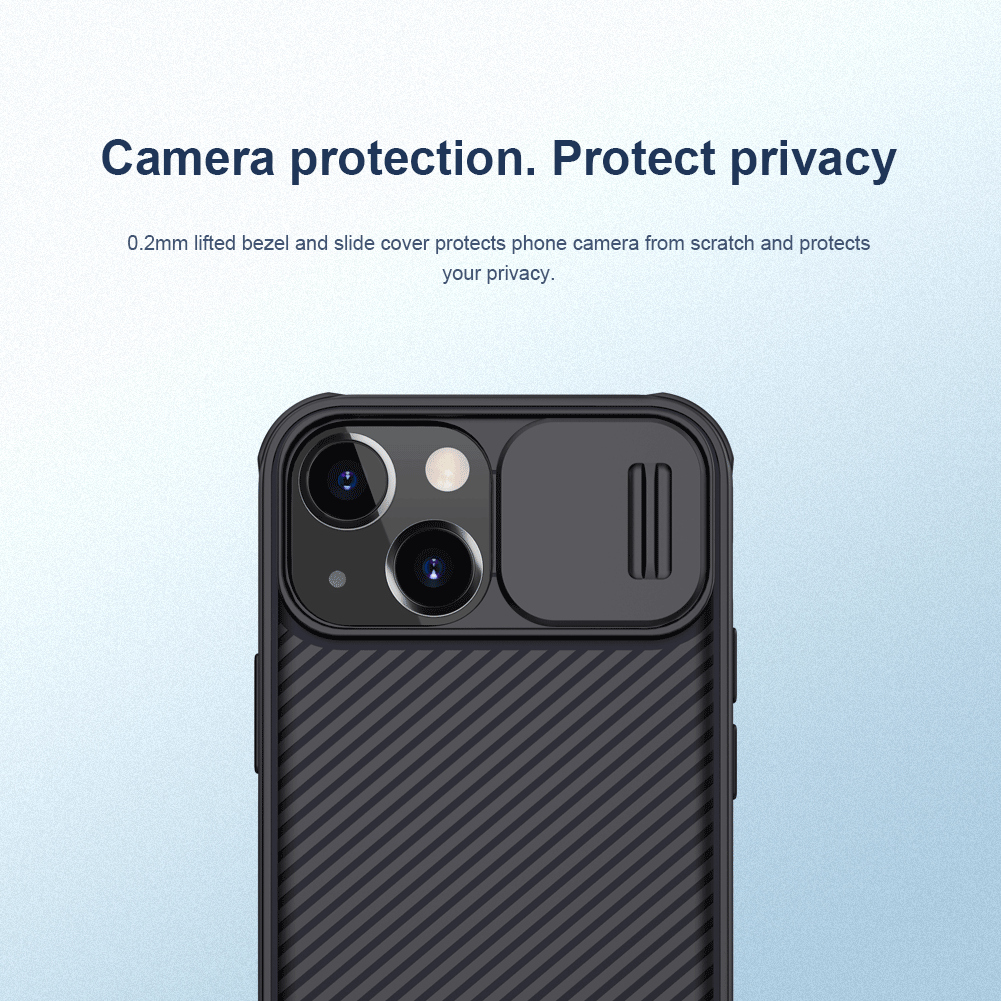 Противоударный чехол с защитной крышкой для задней камеры и беспроводной зарядкой MagSafe от Nillkin серии CamShield Pro Magnetic Case для смартфона iPhone 13 Mini.