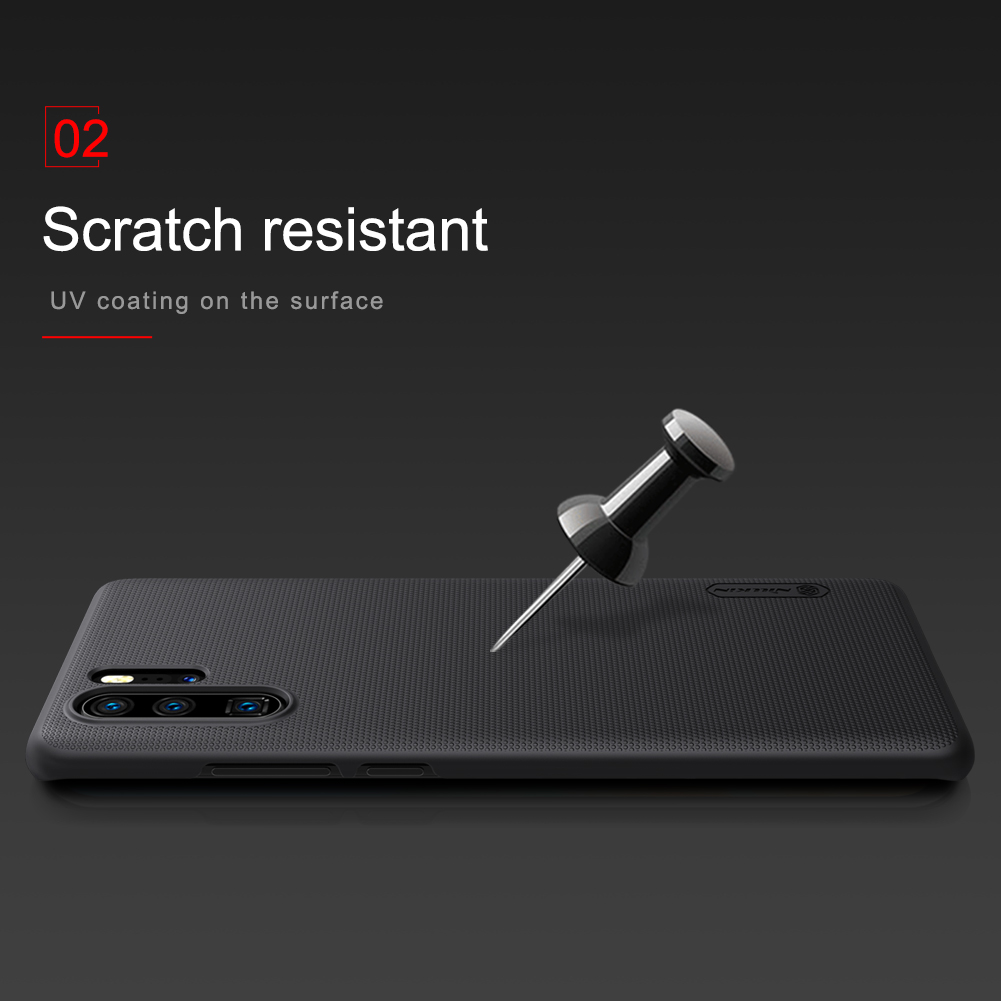 Тонкий чехол черного цвета от Nillkin серии Super Frosted Shield для смартфона Huawei P30 Pro изготавливается из экологичных материалов путем высокоточного литья под давление с высокой температурой.