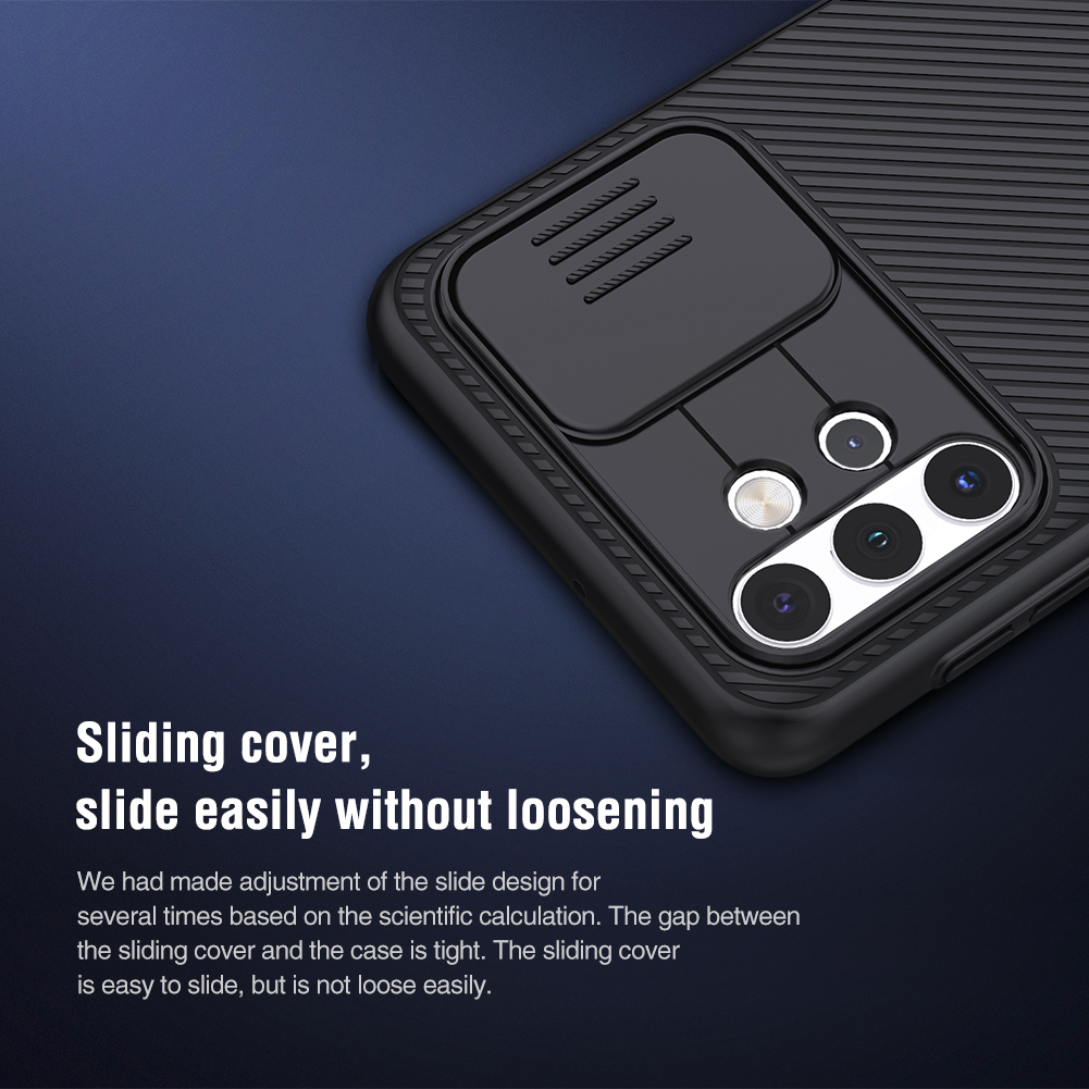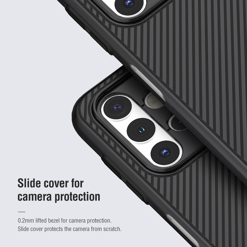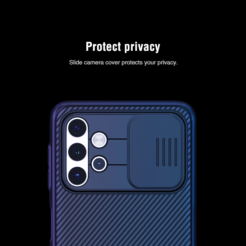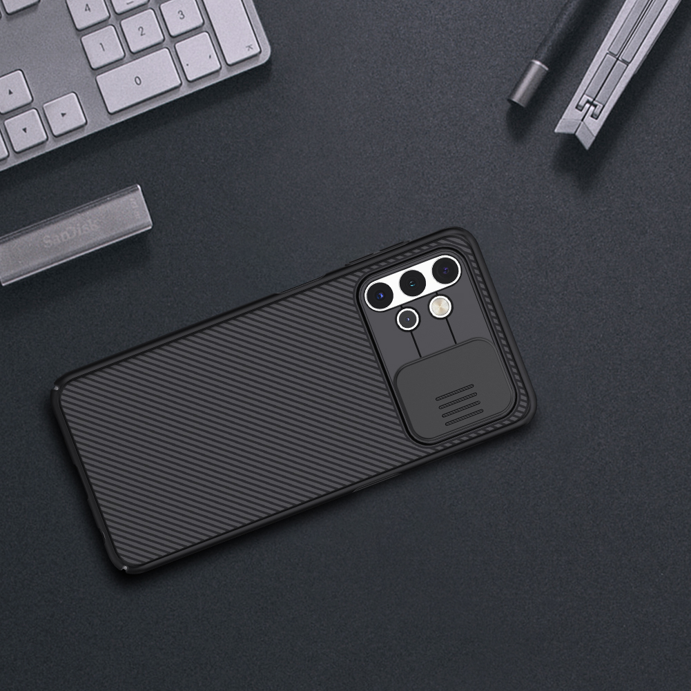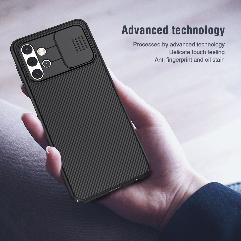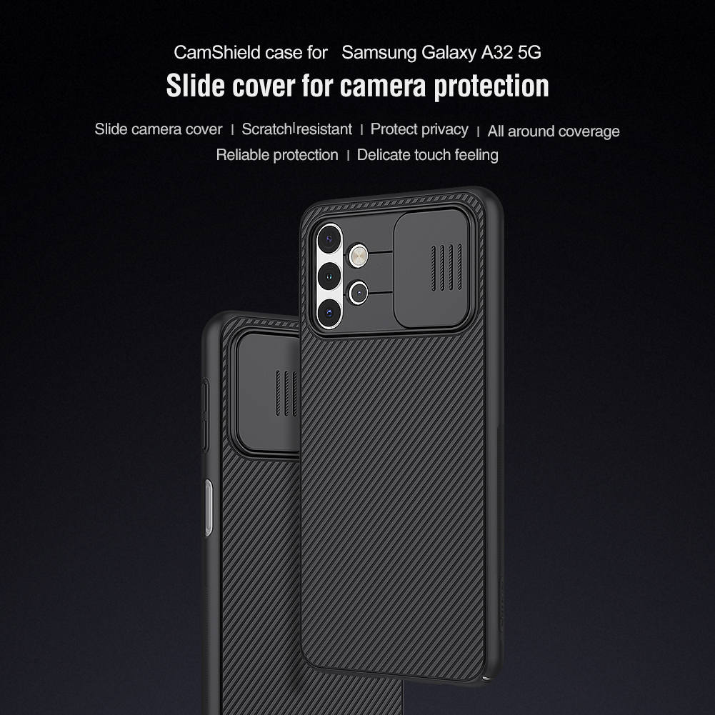 Противоударный чехол черного цвета с защитной крышкой задней камеры от Nillkin серии CamShield Case для телефона Samsung Galaxy A32 5G (модель чехла подходит только для моделей 5G).
