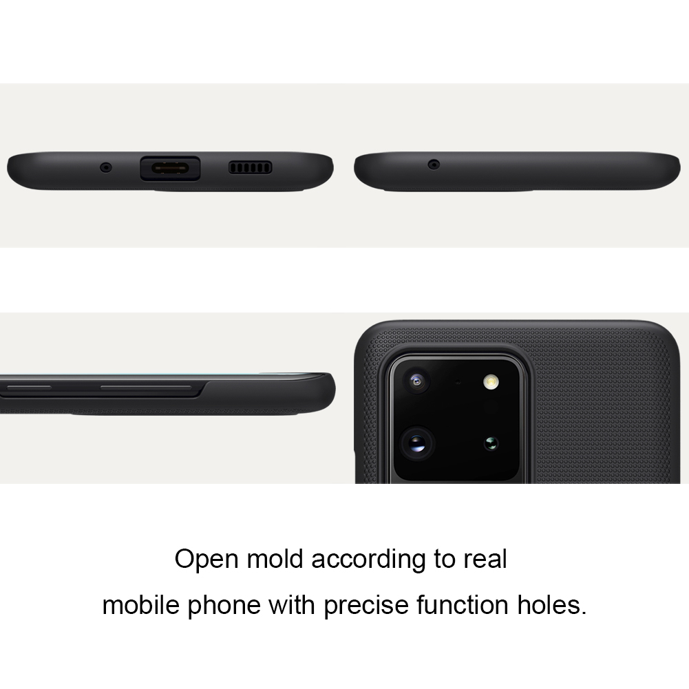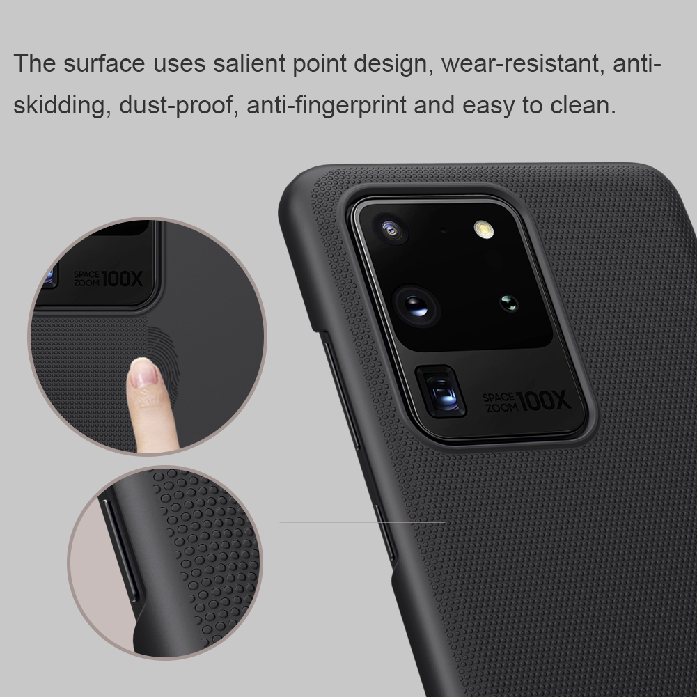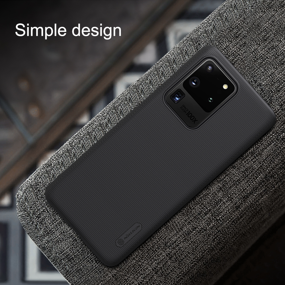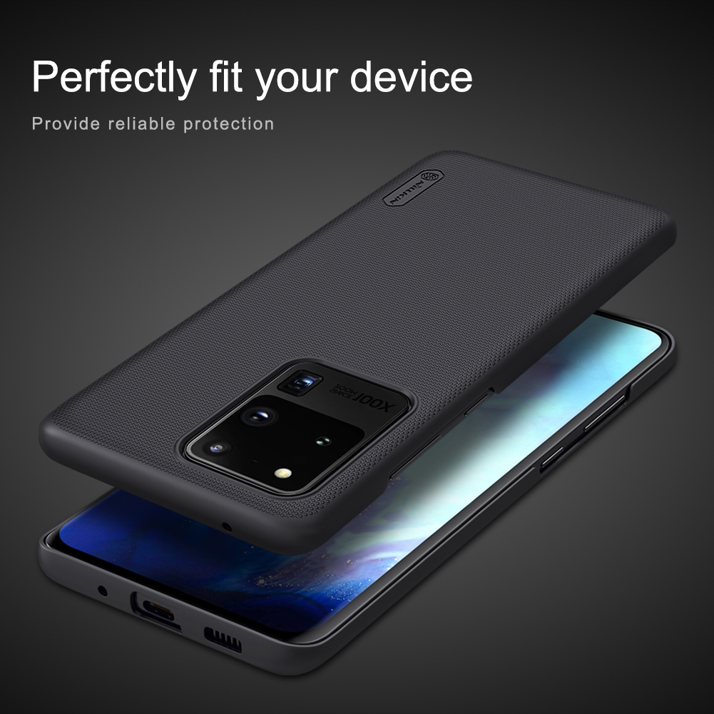 Чехол черного цвета от Nillkin серии Super Frosted Shield для смартфона Samsung Galaxy S20 Ultra изготавливается из экологичных материалов путем высокоточного литья под давление с высокой температурой.