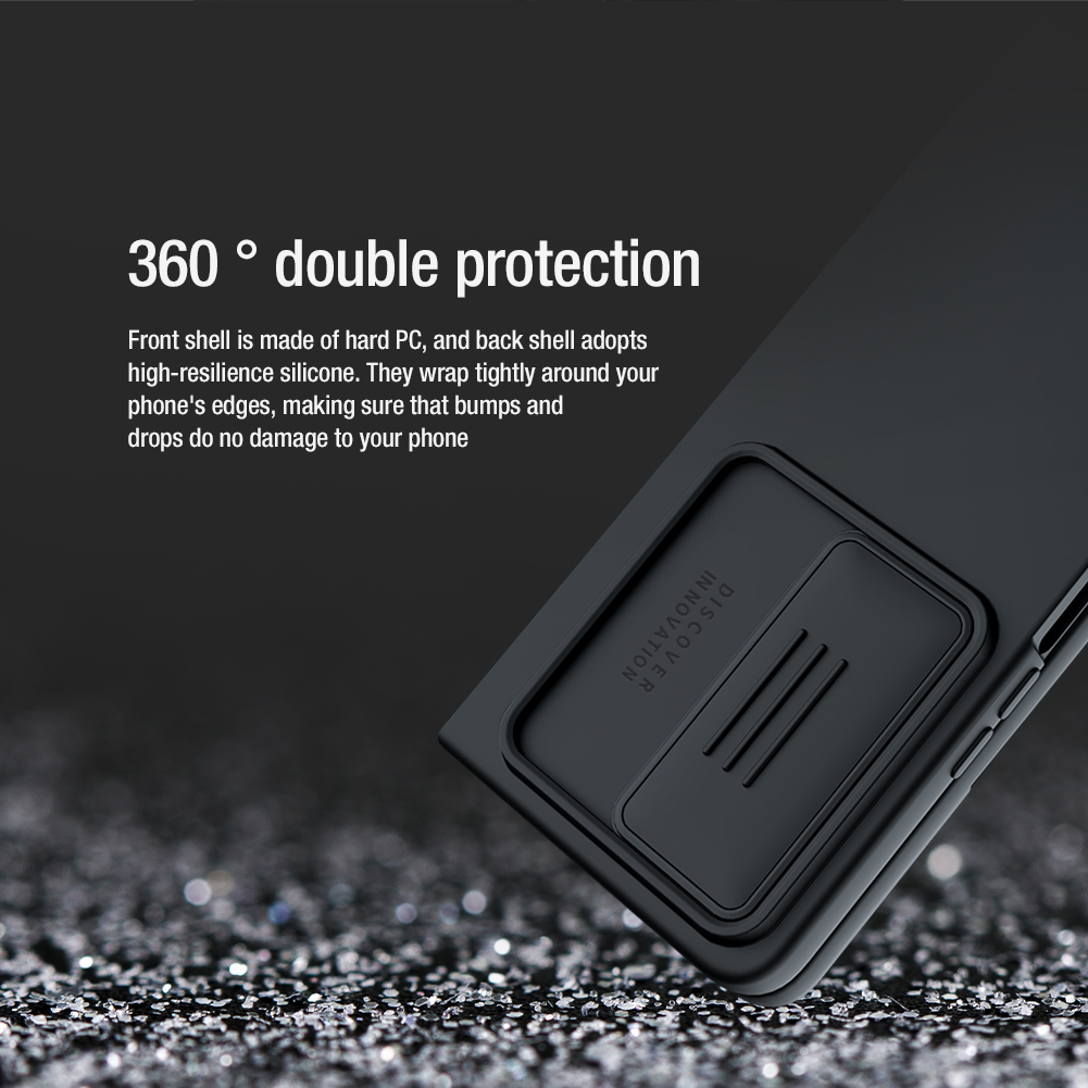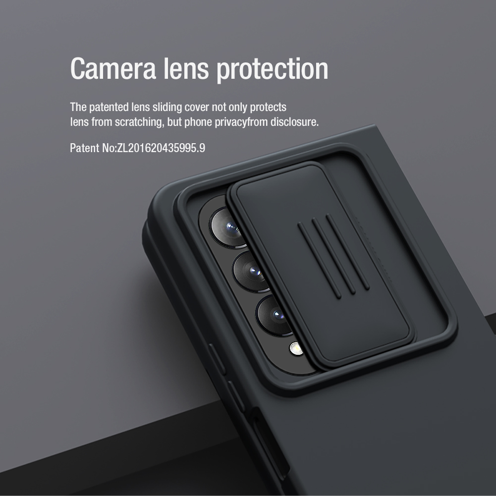 Противоскользящий чехол из шелковистого силикона с защитной крышкой задней камеры от Nillkin серии CamShield Silky Silicone для телефона Samsung Galaxy Z Fold 4 5G.