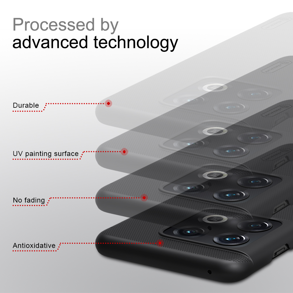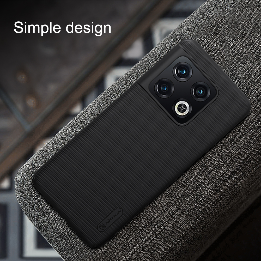 Тонкий чехол черного цвета от Nillkin серии Super Frosted Shield для смартфона OnePlus 10 Pro изготавливается из экологичных материалов путем высокоточного литья под давление с высокой температурой.