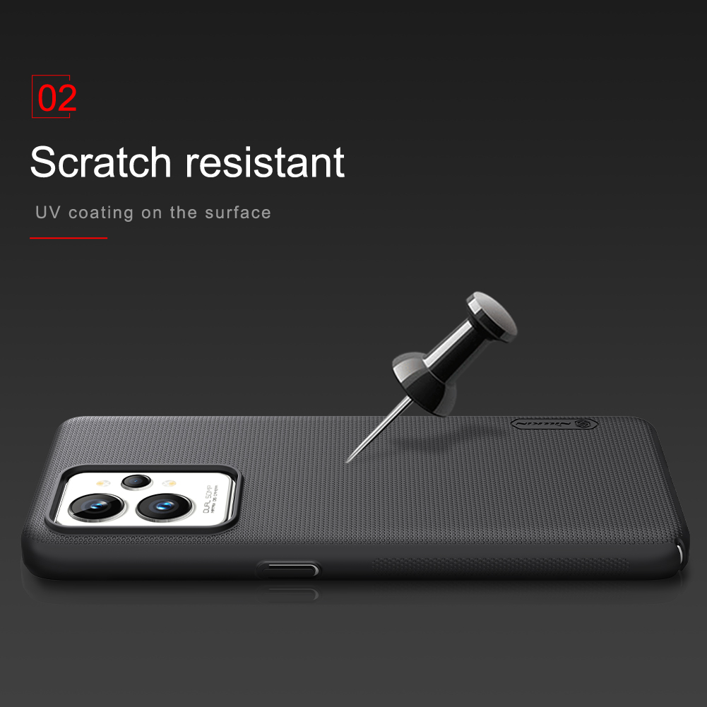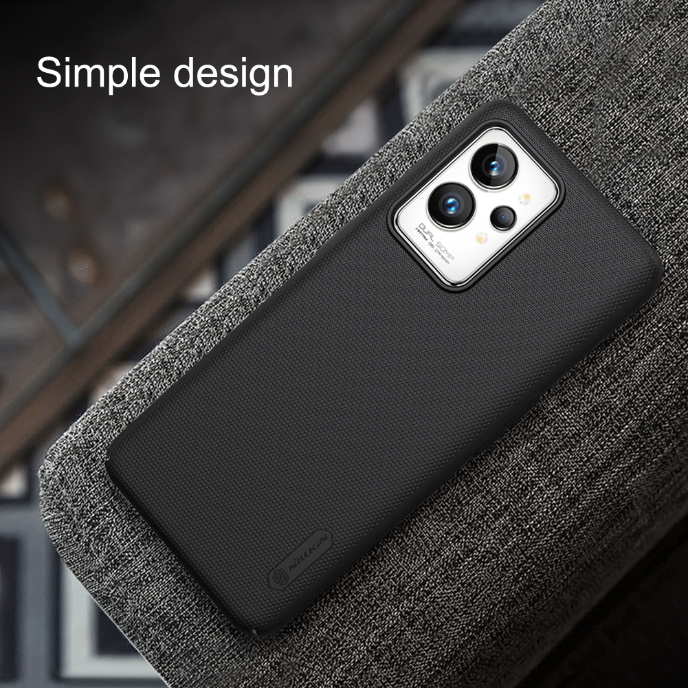 Тонкий чехол черного цвета от Nillkin серии Super Frosted Shield для смартфона Realme GT2 Pro изготавливается из экологичных материалов путем высокоточного литья под давление с высокой температурой.