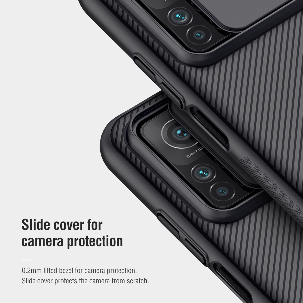 Противоударный чехол с защитной крышкой задней камеры серии CamShield Case от Nillkin для Xiaomi Mi 10T и Mi 10T Pro создан для любителей активного отдыха.