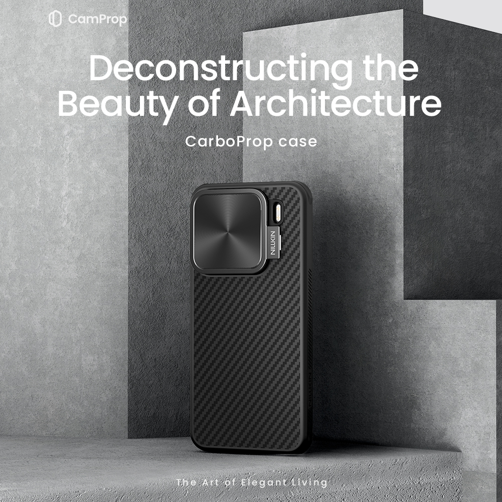 Чехол из арамидного карбона (широко известного в индустрии материалов как "black gold") с металлической откидной крышкой для камеры от Nillkin серии CarboProp Magnetic Case с функцией поддержки магнитной беспроводной зарядки MagSafe для телефона Xiaomi 15 Pro.