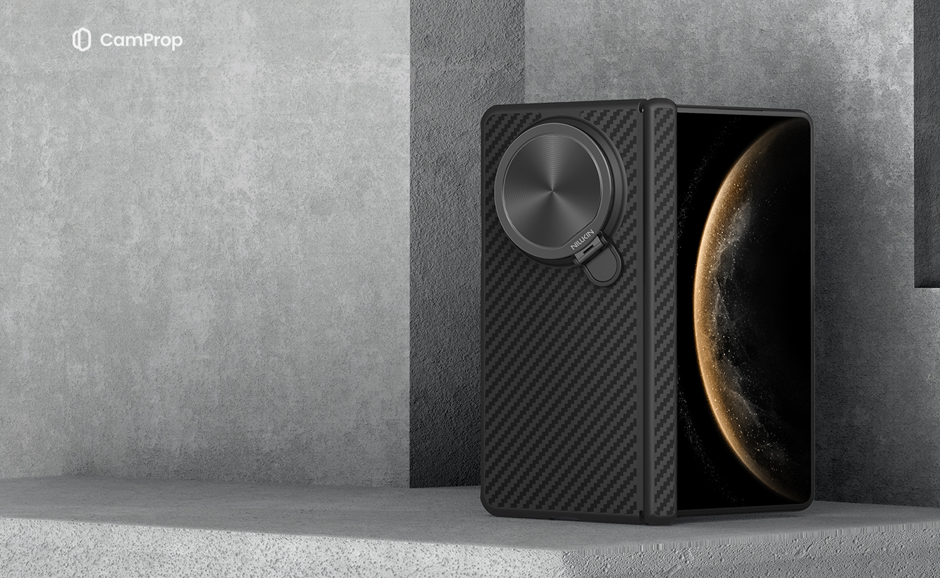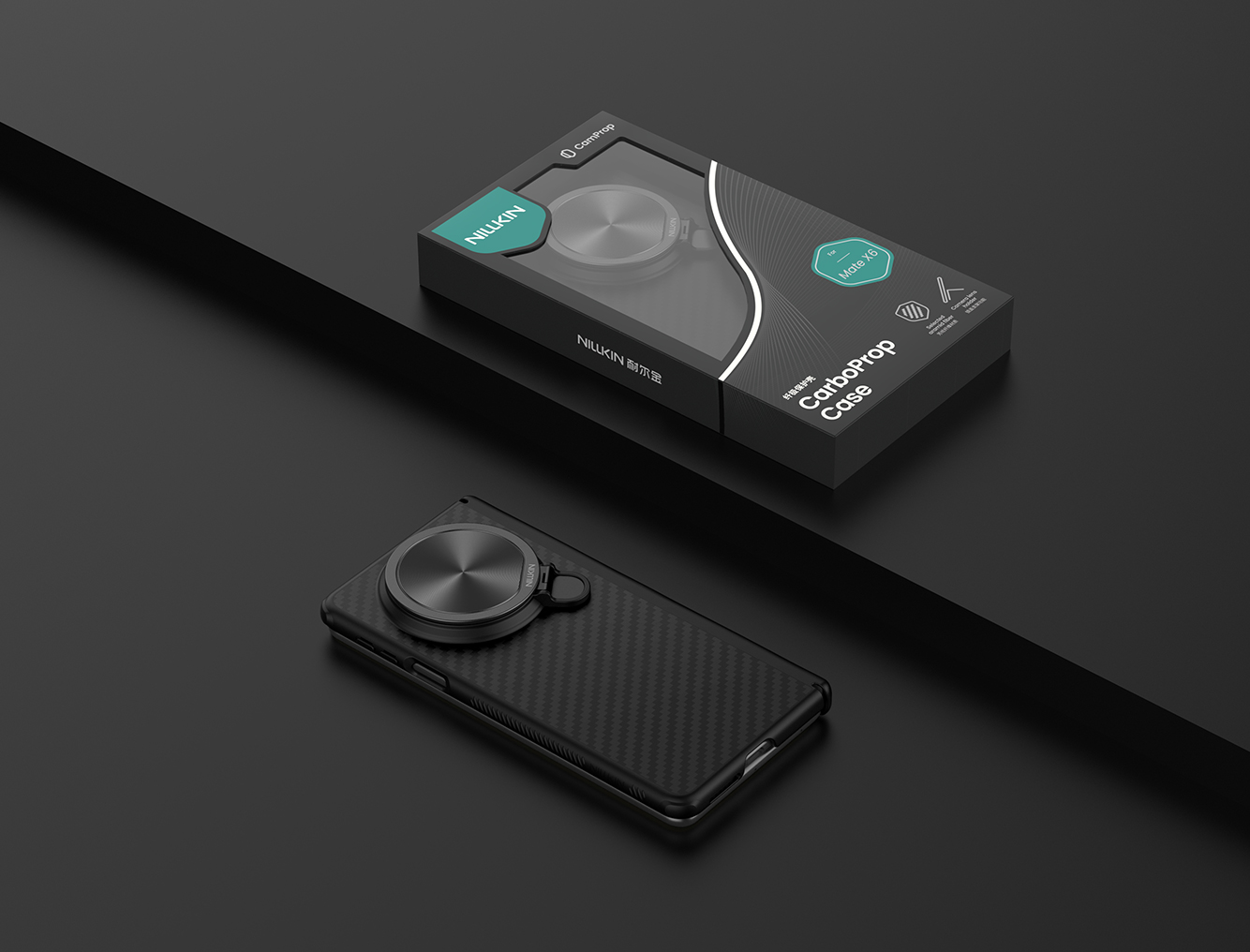 Чехол из арамидного карбона (широко известного в индустрии материалов как "black gold") с металлической откидной крышкой для камеры от Nillkin серии CarboProp Magnetic Case с функцией поддержки магнитной беспроводной зарядки MagSafe для телефона Huawei Mate X6.