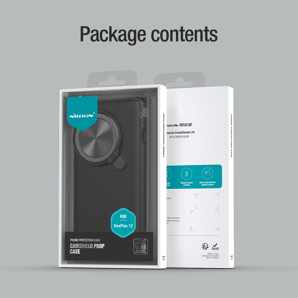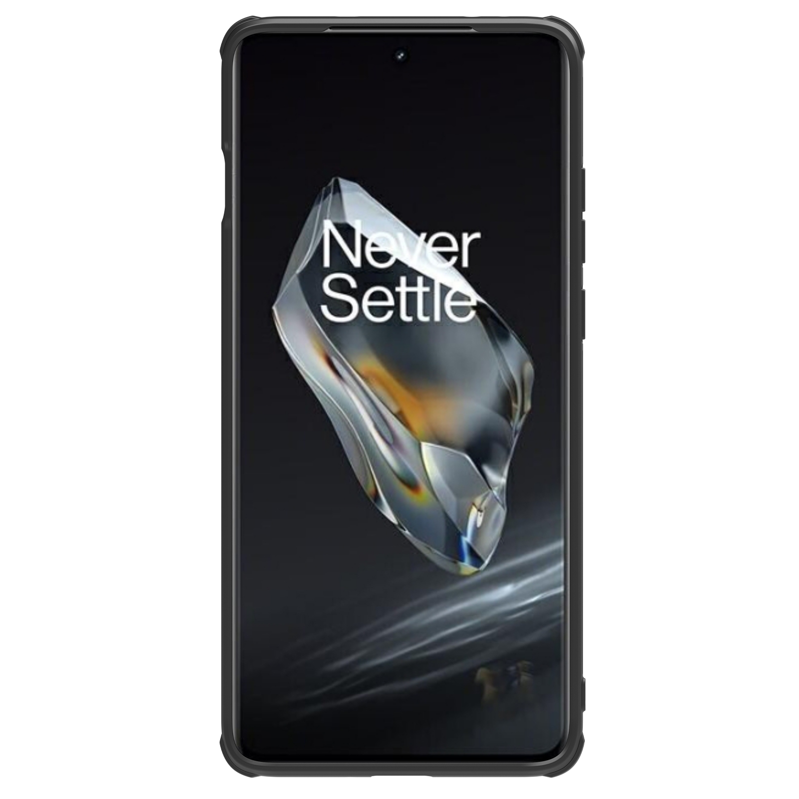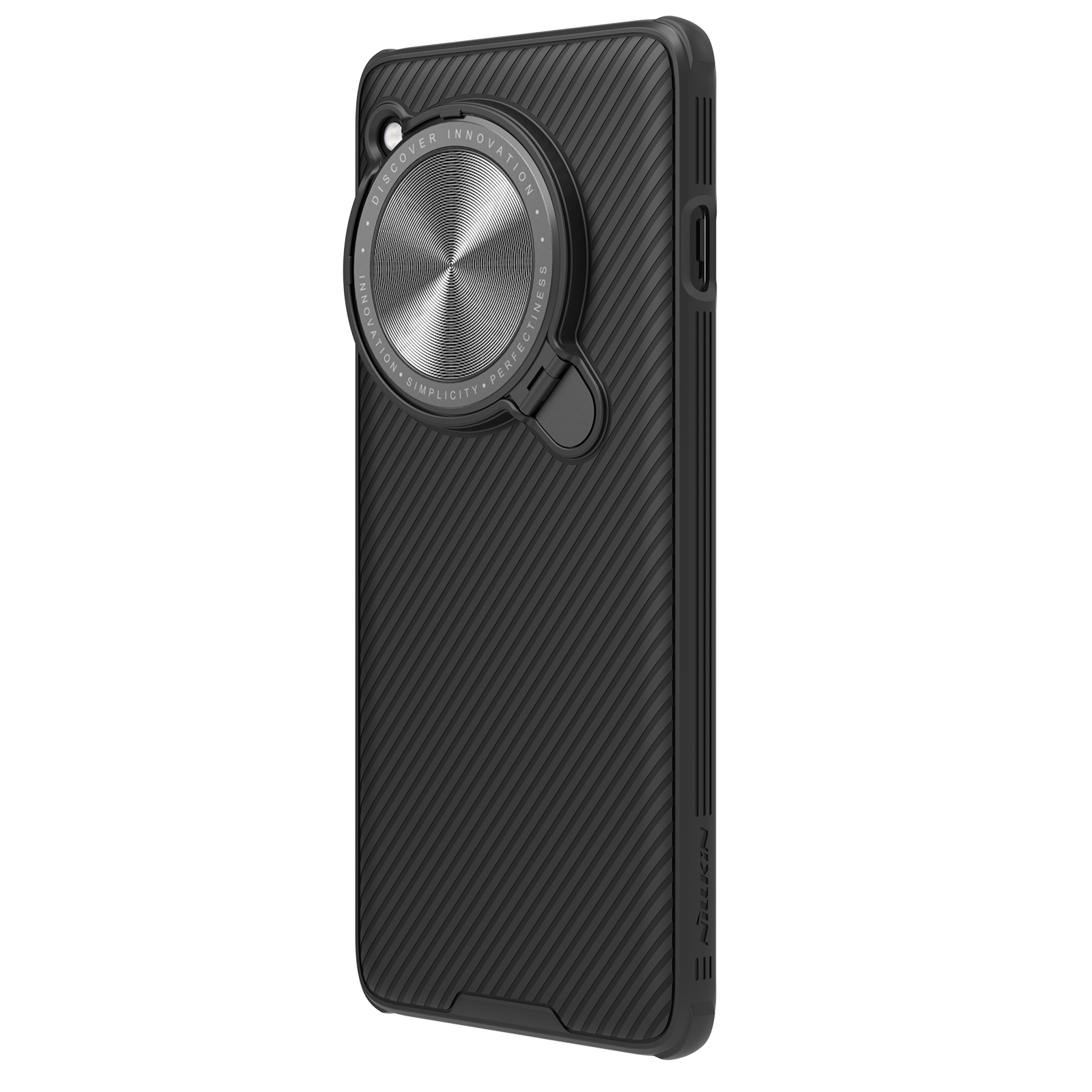 Противоударный чехол черного цвета с откидной металлической защитной крышкой для камеры от Nillkin серии CamShield Prop Magnetic Case для телефона OnePlus 12 создан для любителей активного отдыха.