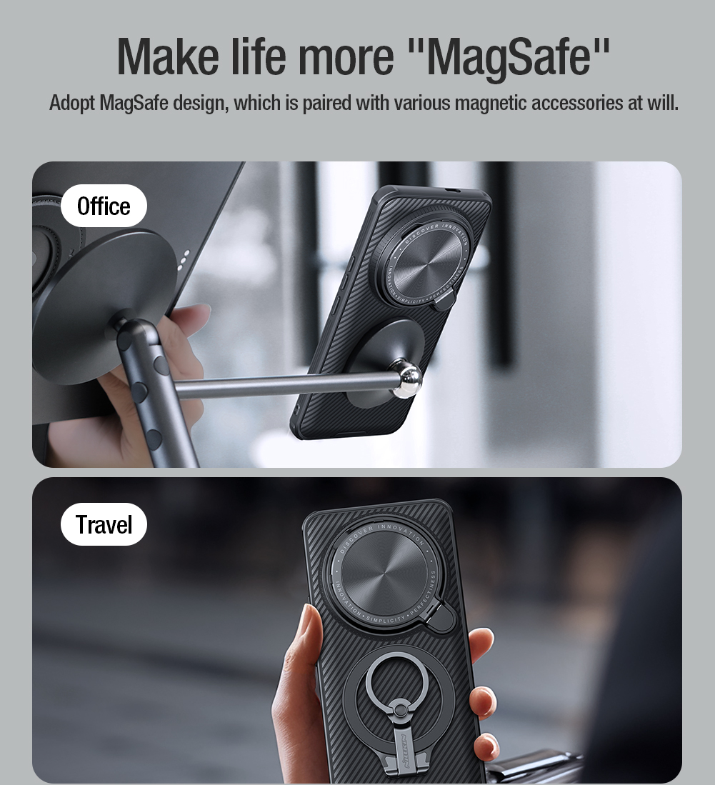 Противоударный чехол черного цвета с откидной металлической защитной крышкой для камеры от Nillkin серии CamShield Prop Magnetic Case для телефона Xiaomi 14 Ultra создан для любителей активного отдыха.