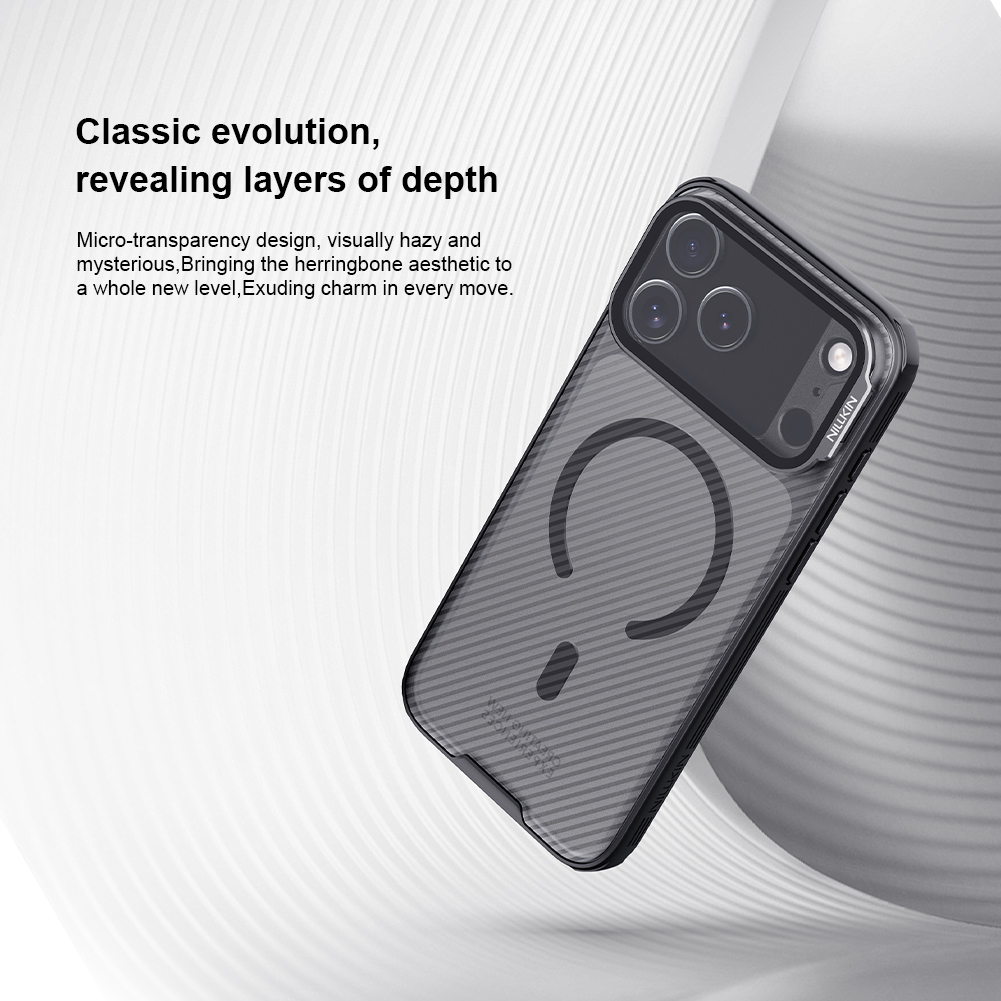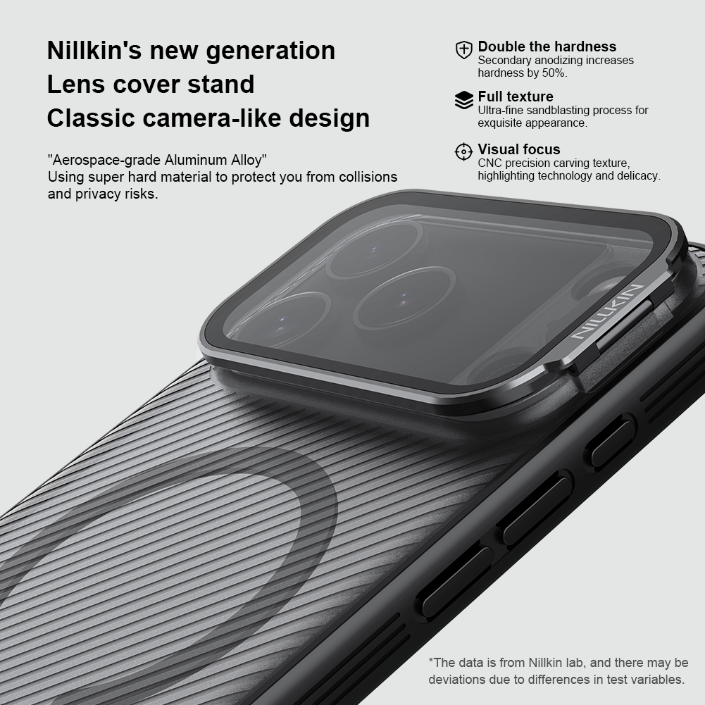 Противоударный чехол прозрачный тонированный (Transparent Black) с откидной металлической защитной крышкой для камеры и поддержкой магнитной беспроводной зарядки MagSafe от Nillkin серии CamShield Prop Magnetic Case (версия с прозрачной крышкой объектива) для телефона iPhone 17 Pro Max создан для любителей активного отдыха.