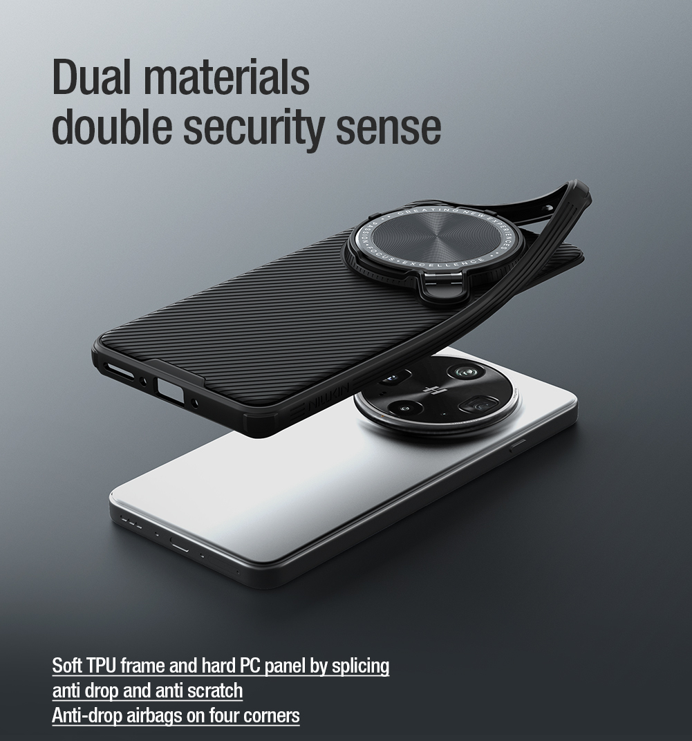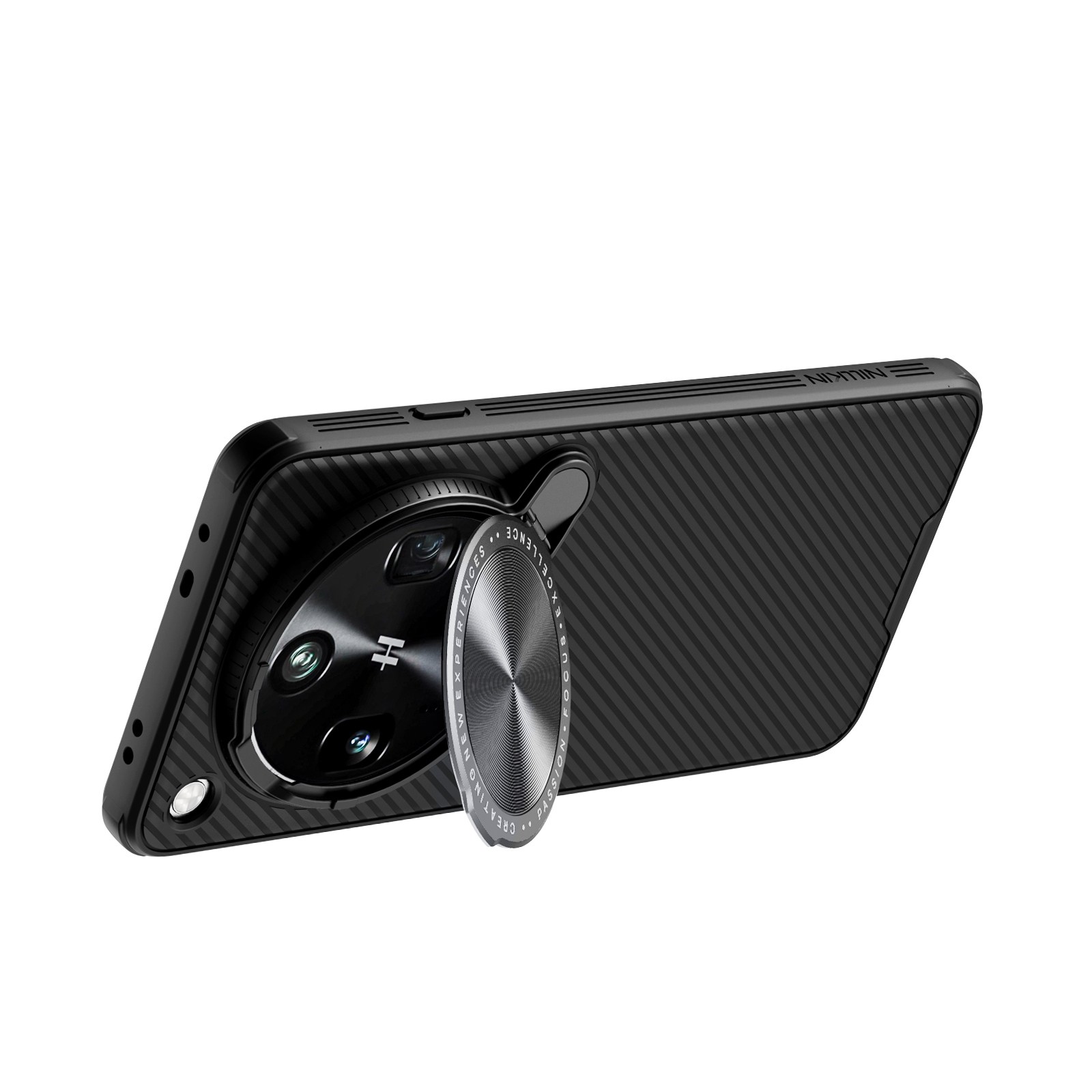 Противоударный чехол черного цвета с откидной металлической защитной крышкой для камеры от Nillkin серии CamShield Prop Case для телефона OPPO Find X8 Ultra создан для любителей активного отдыха.