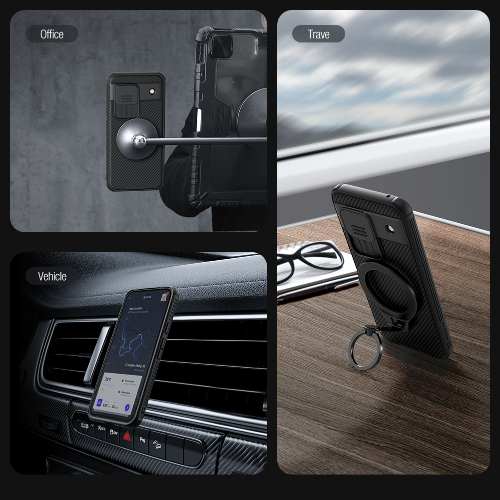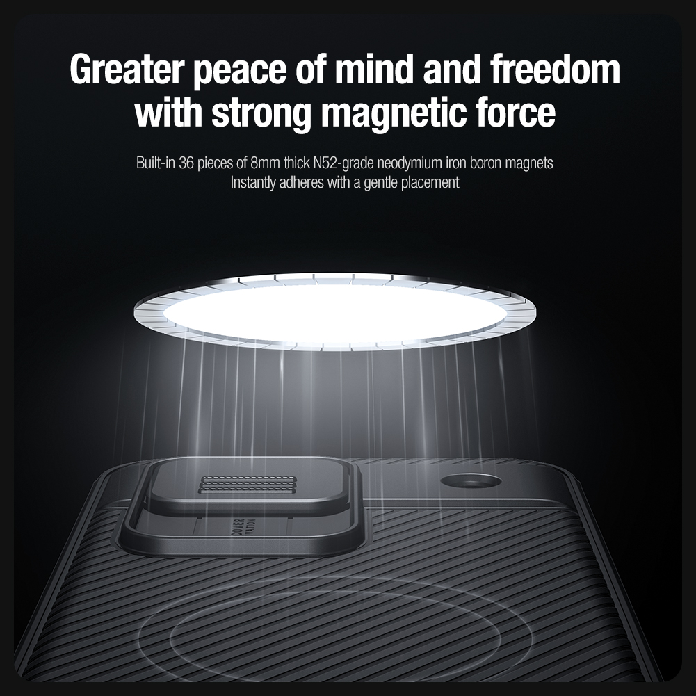Противоударный чехол с защитной крышкой для задней камеры и встроенным круглым магнитом от Nillkin серии CamShield Pro Magnetic Case для смартфона Google Pixel 8A.