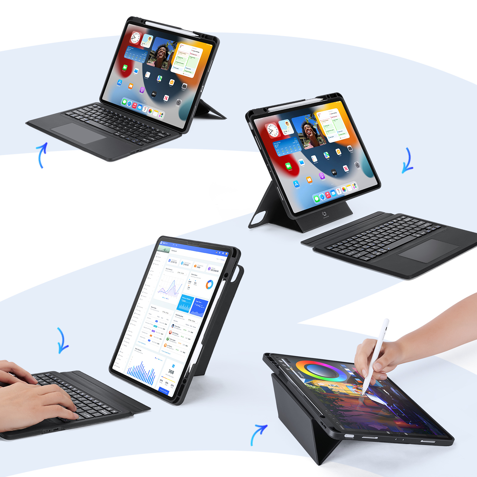 Защитный чехол подставка с клавиатурой (RUS) от Dux Ducis для планшета iPad Air 13 (2024-25) и iPad Pro 12.9 (2018, 2020, 2021, 2022), серия DK Series Keyboard, русская клавиатура с подсветкой