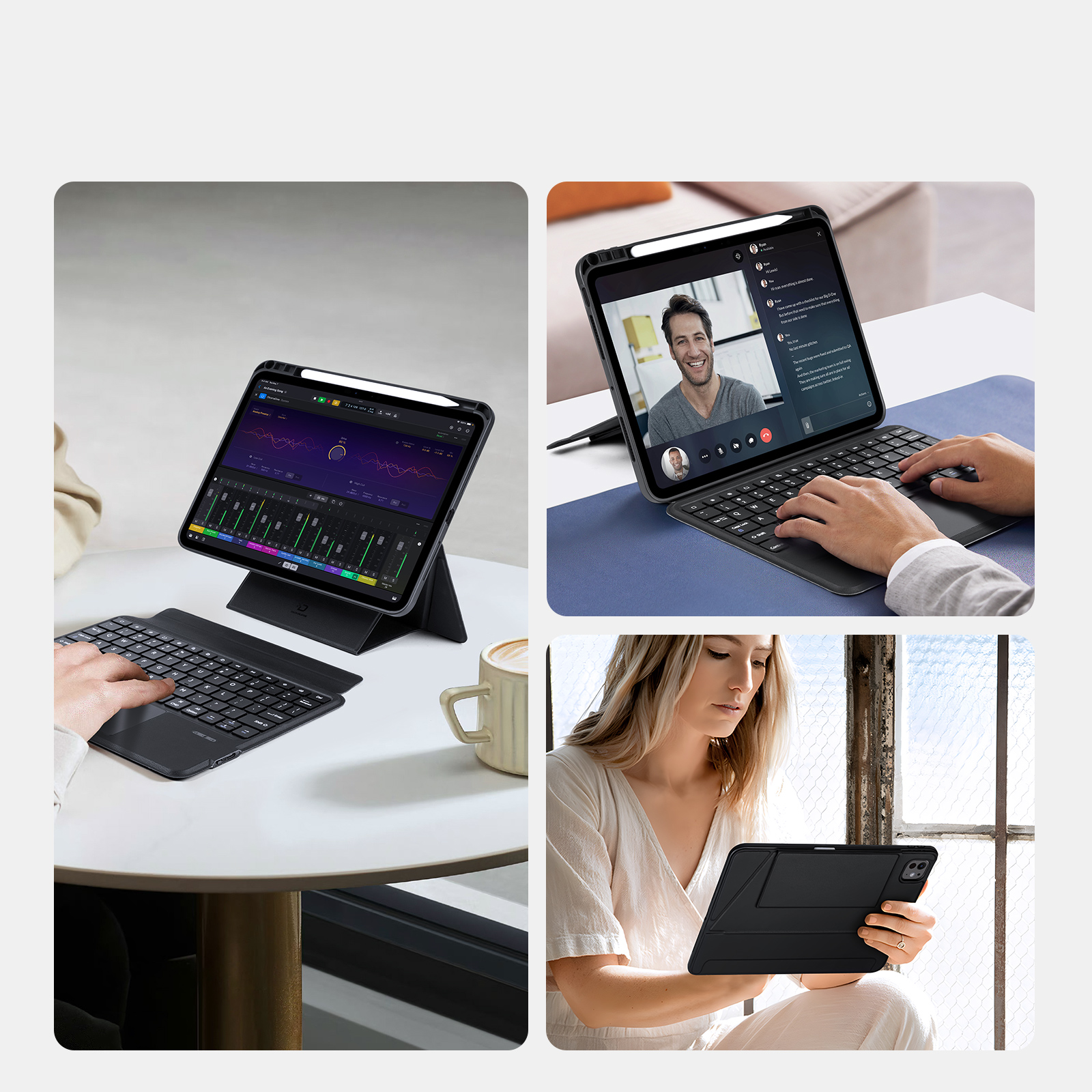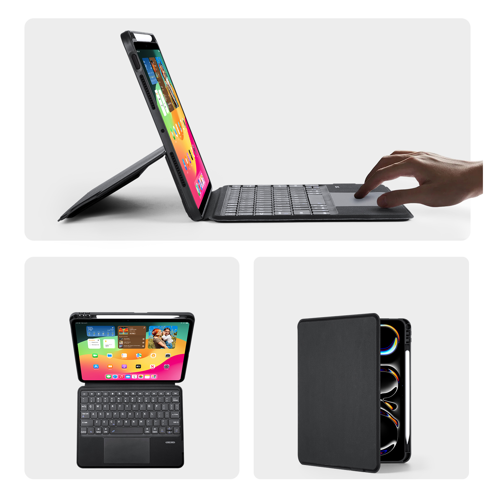 Защитный чехол подставка с клавиатурой (RUS) от Dux Ducis для планшета iPad Pro 11 (2024-), серия DK Series Keyboard, русская клавиатура с подсветкой