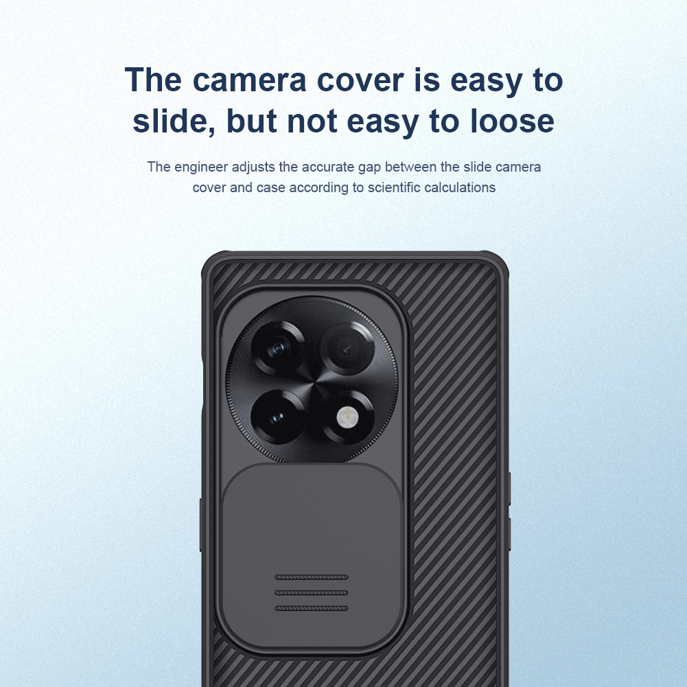 Противоударный чехол черного цвета с защитной шторкой задней камеры от Nillkin серии CamShield Pro Case для телефона OnePlus Ace 2 и 11R создан для любителей активного отдыха.