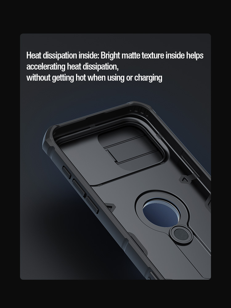 Противоударный чехол с кольцом и металлической защитной крышкой для задней камеры от Nillkin серии CamShield Armor Case для телефона iPhone 15 Pro Max создан для любителей активного отдыха.