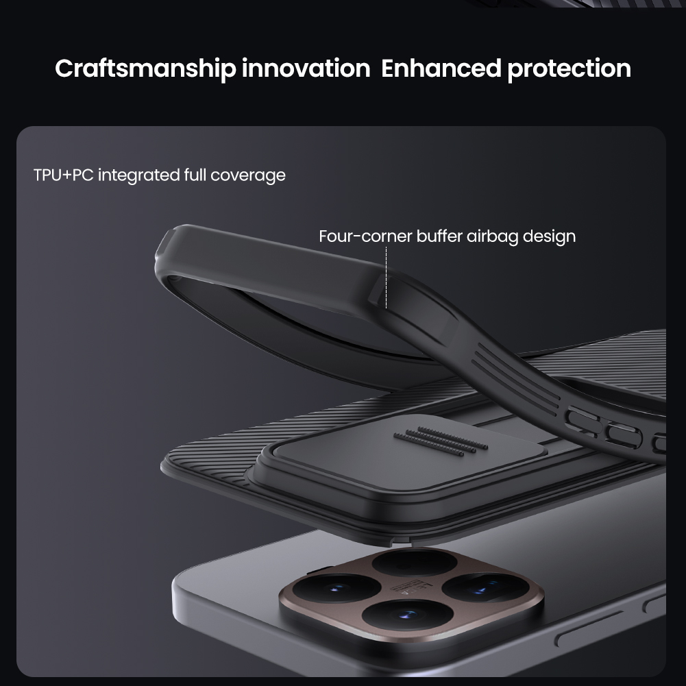 Только для 15Т Pro! Противоударный чехол черного цвета с защитной шторкой задней камеры от Nillkin серии CamShield Pro Case для телефона Xiaomi 15T Pro создан для любителей активного отдыха.