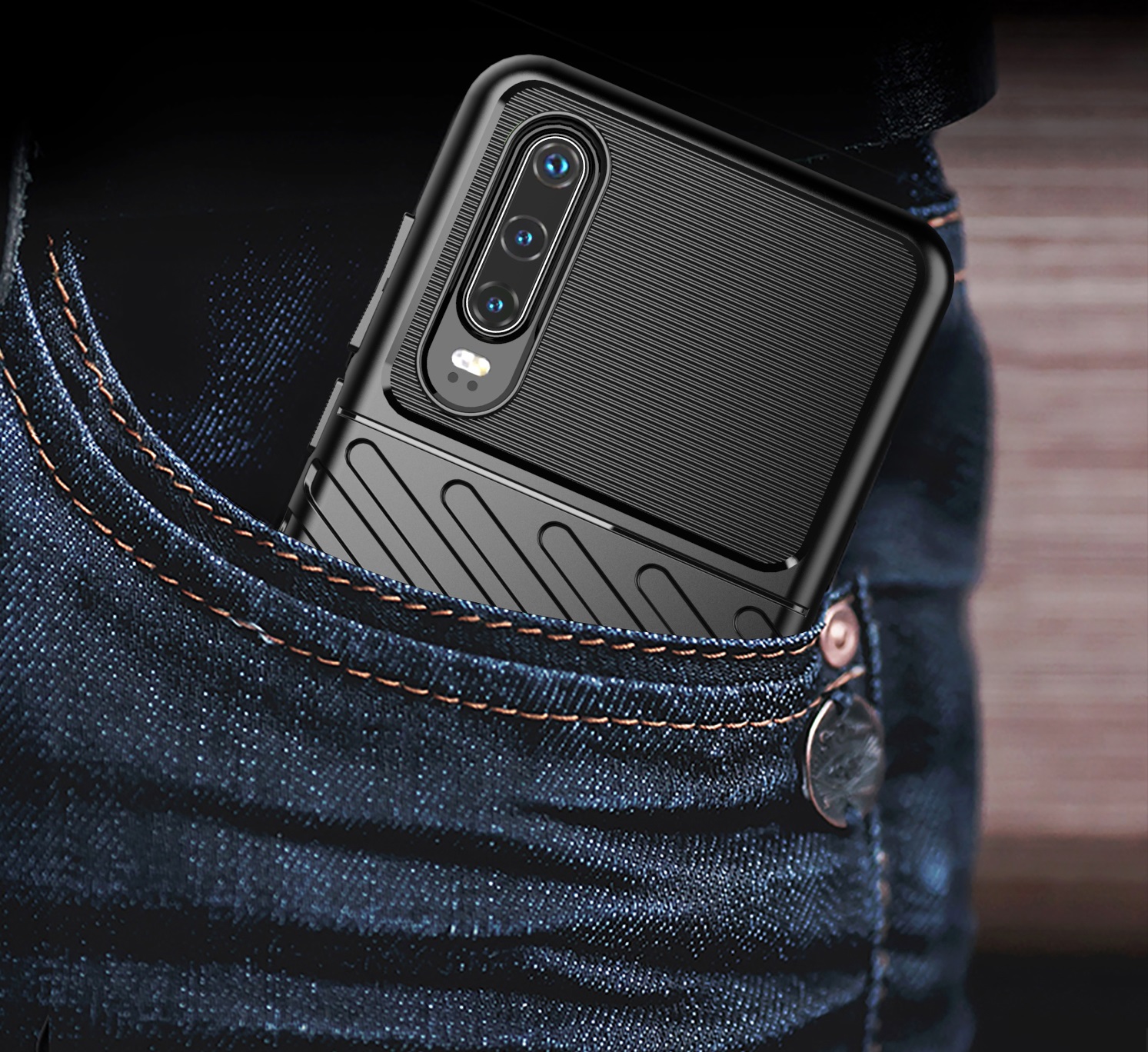 Защитный бампер с высокими противоударными свойствами черного цвета для смартфона Huawei P30 от Caseport, серия Onyx