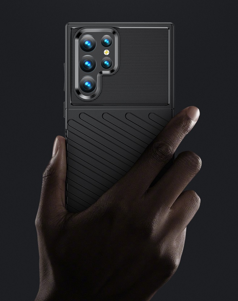 Защитный бампер с высокими противоударными свойствами черного цвета для смартфона Samsung Galaxy S23 Ultra от Caseport, серия Onyx
