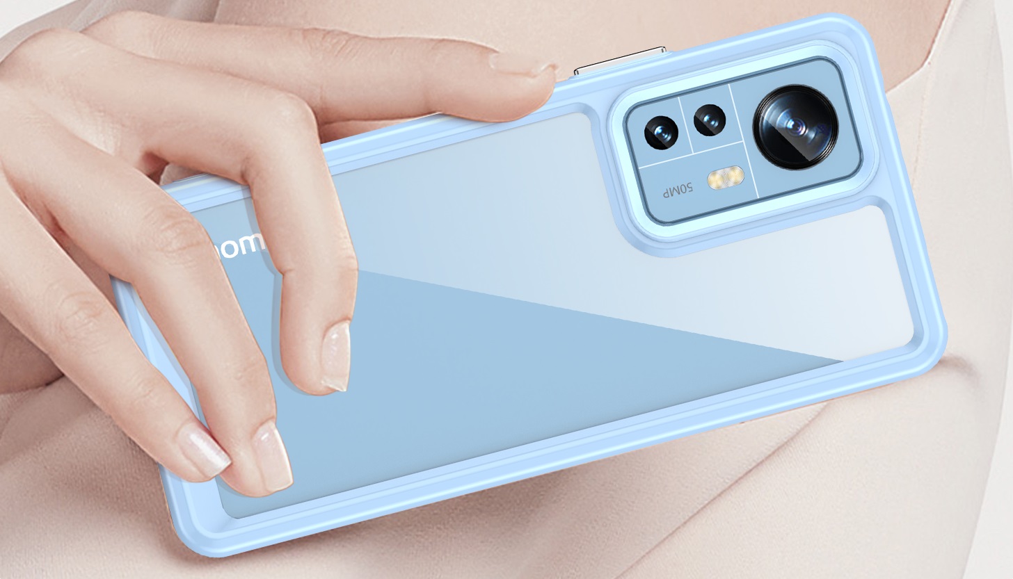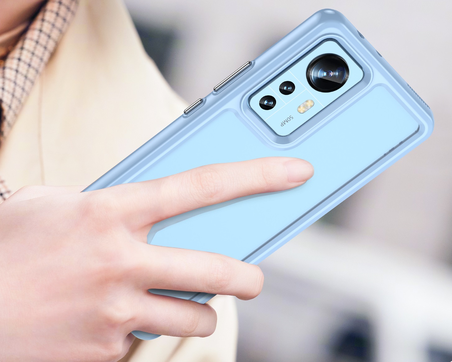 Защитный, противоударный чехол с усиленными синими боковыми рамками для дисплея на телефон Xiaomi Mi 12 и 12X от Caseport, серия Fusion