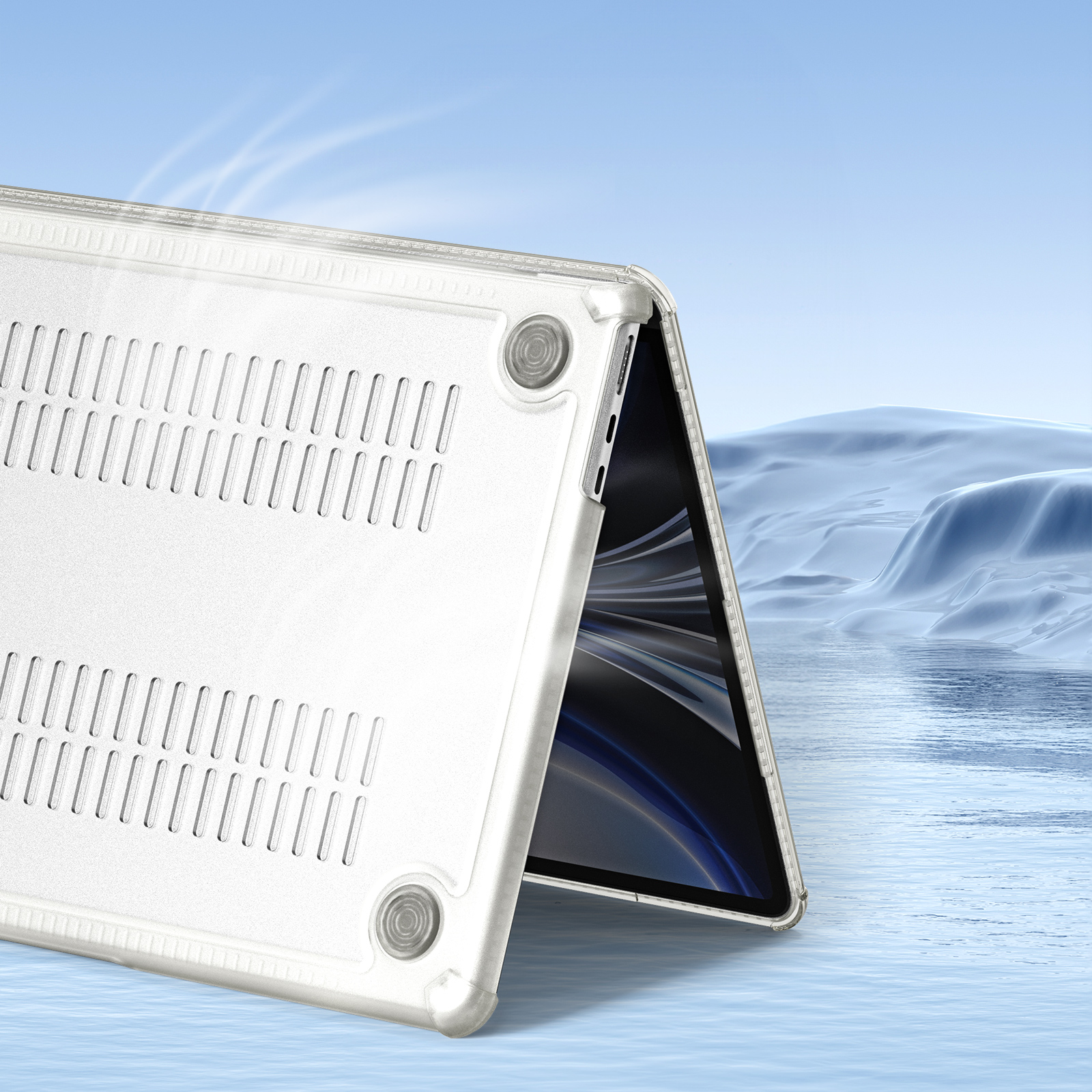 Середина выполнена из прозрачного поликарбонатного листа, окруженного утолщенным жестким слоем из термопластичного полиуретана (TPU). Чехол обеспечивает всестороннюю защиту и устойчив к трещинам и царапинам. Матовая поверхность с олеофобным слоем предотвращает появление отпечатков пальцев и пятен, сохраняя ваш ноутбук MacBook Pro диагональю 13.3 выпуск 2016-2021г чистым как новый в течение длительного времени. Тепло легко отводится через вентиляционные отверстия, сохраняя MacBook прохладным.