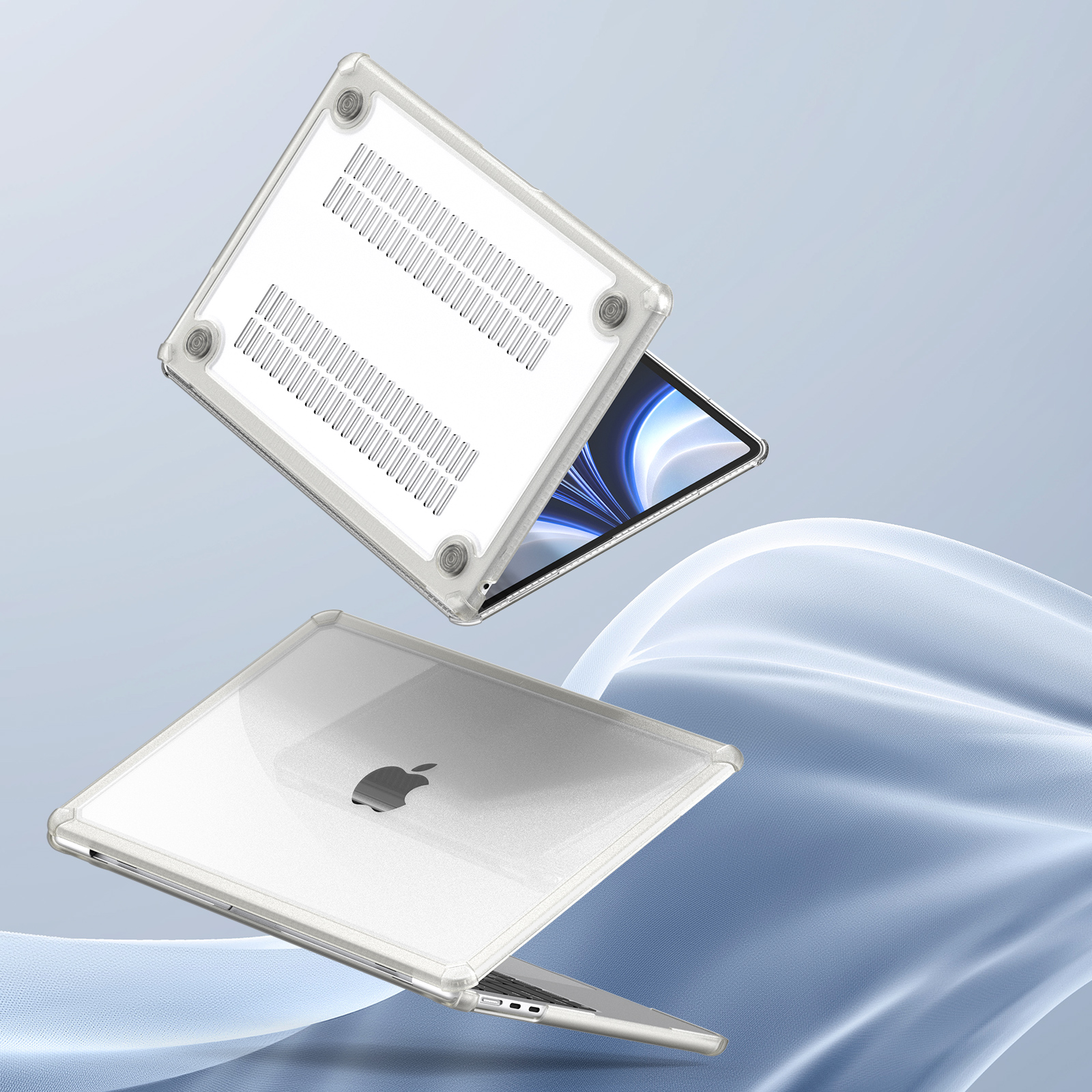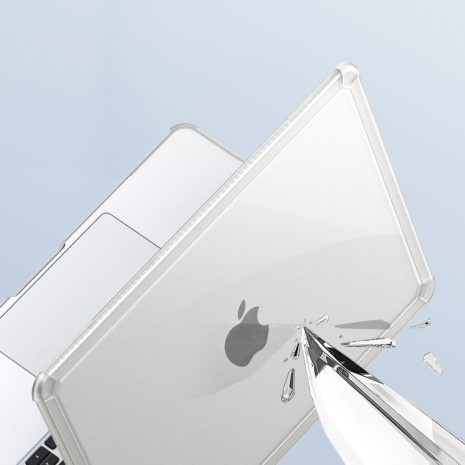 Середина выполнена из прозрачного поликарбонатного листа, окруженного утолщенным жестким слоем из термопластичного полиуретана (TPU). Чехол обеспечивает всестороннюю защиту и устойчив к трещинам и царапинам. Матовая поверхность с олеофобным слоем предотвращает появление отпечатков пальцев и пятен, сохраняя ваш ноутбук MacBook Pro диагональю 16, выпуск 2019, 2021, 2023, 2024 чистым как новый в течение длительного времени. Тепло легко отводится через вентиляционные отверстия, сохраняя MacBook прохладным.