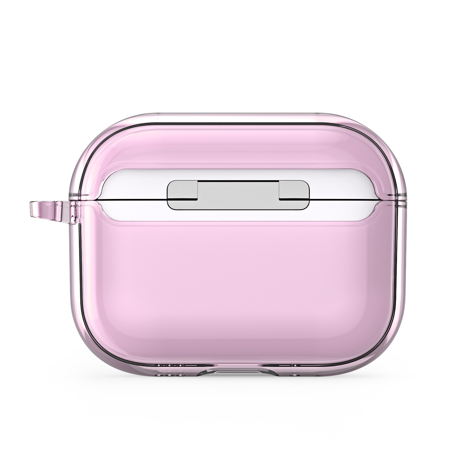 Чехол прозрачный розовый от Dux Ducis для наушников AirPods Pro 3, серия PECL Series Case, выполнен из высококачественного плотного TPU + PC, обеспечивает плотное прилегание и надёжную защиту. Защитный чехол поддерживает проводную и беспроводную зарядку без снятия чехла AirPod Pro 3. Виден передний светодиод зарядного кейса.