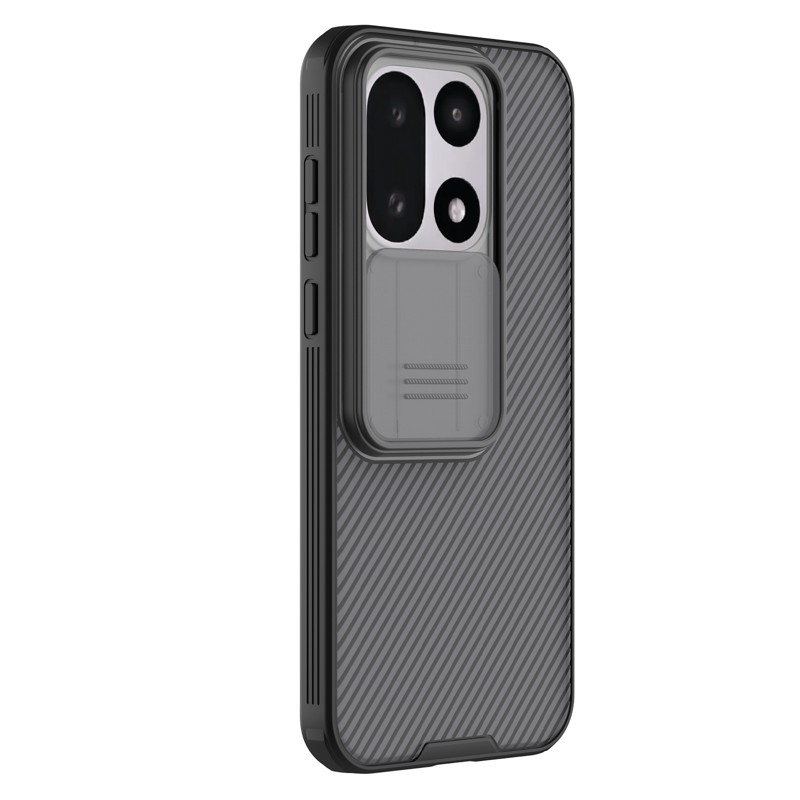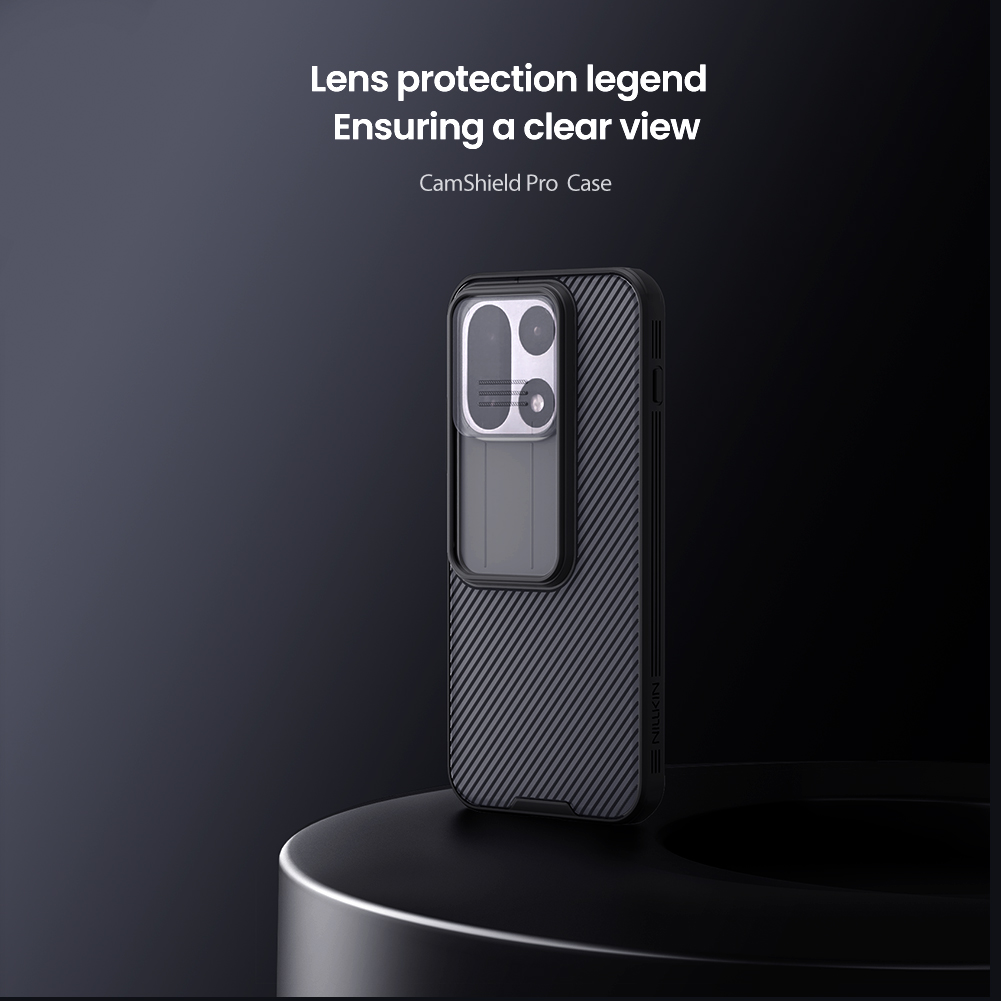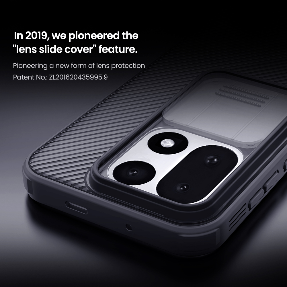 Противоударный чехол прозрачный тонированный (Transparent black) с защитной шторкой для задней камеры от Nillkin серии CamShield Pro Case для телефона OnePlus 15 создан для любителей активного отдыха.