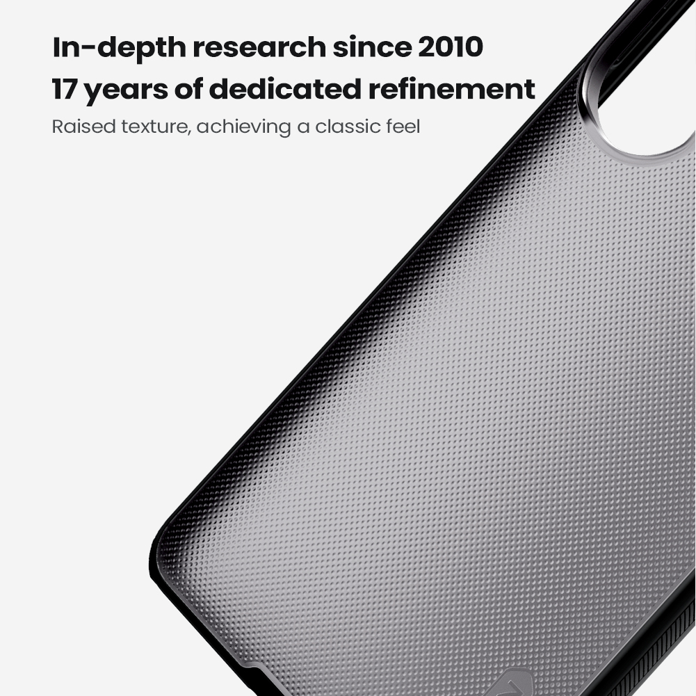 Поверхность чехла имеет характерный рельефный дизайн, обладает высокой износостойкостью, а также противоскользящими и пыленепроницаемыми свойствами. Защита от отпечатков пальцев и простота очистки.