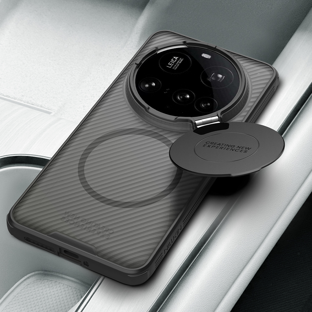 Противоударный чехол прозрачный тонированный (Transparent Black) с откидной металлической защитной крышкой для камеры и поддержкой магнитной беспроводной зарядки MagSafe от Nillkin серии CamShield Prop Magnetic Case для телефона Xiaomi 15 Ultra создан для любителей активного отдыха.