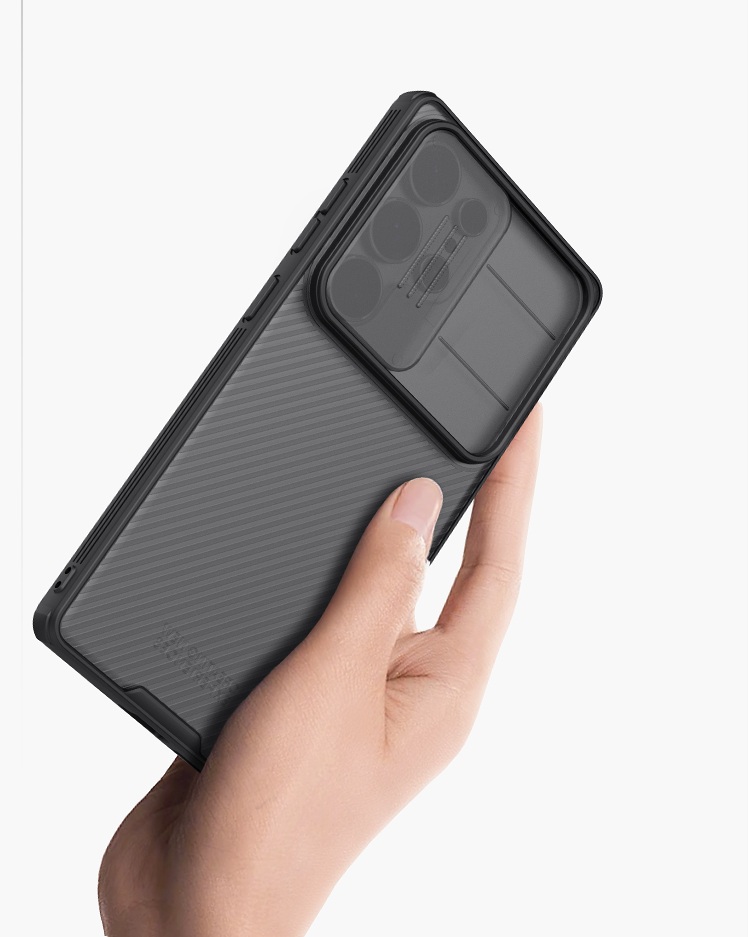 Противоударный чехол прозрачный тонированный с защитной шторкой задней камеры от Nillkin серии CamShield Pro Case для телефона Samsung Galaxy S25 Ultra создан для любителей активного отдыха.