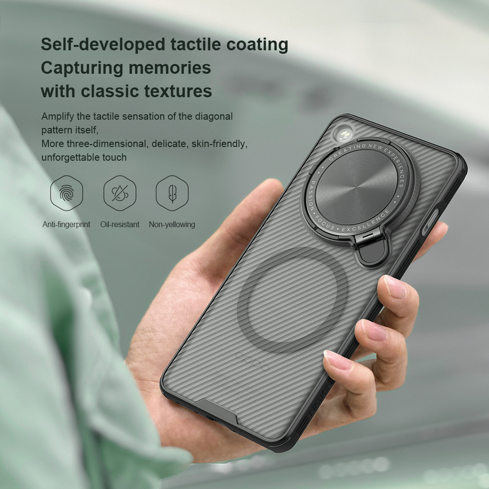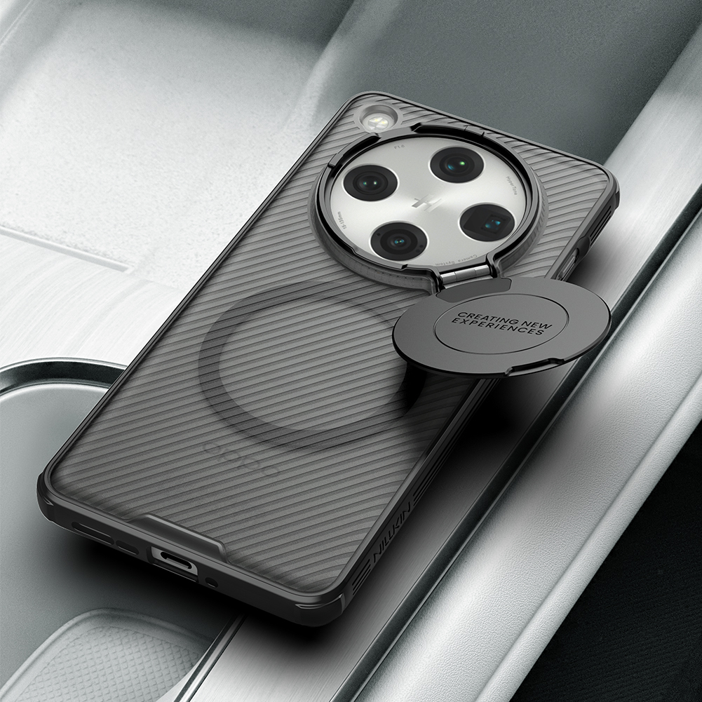 Противоударный чехол прозрачный тонированный (Transparent Black) с откидной металлической защитной крышкой для камеры и поддержкой магнитной беспроводной зарядки MagSafe от Nillkin серии CamShield Prop Magnetic Case для телефона OPPO Find X8 Pro создан для любителей активного отдыха.