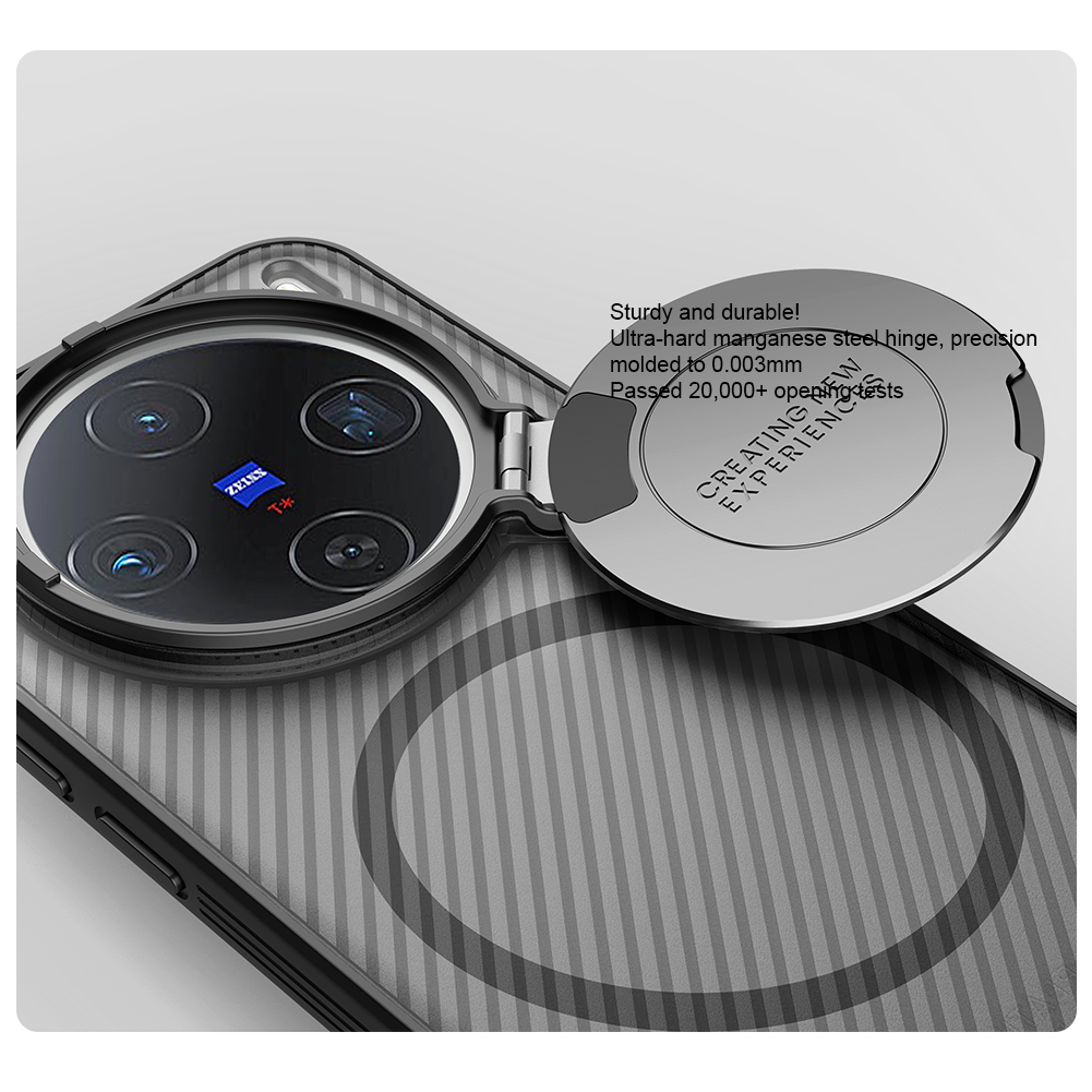 Противоударный чехол прозрачный тонированный (Transparent Black) с откидной металлической защитной крышкой для камеры и поддержкой магнитной беспроводной зарядки MagSafe от Nillkin серии CamShield Prop Magnetic Case для телефона Vivo X200 Pro Mini создан для любителей активного отдыха.