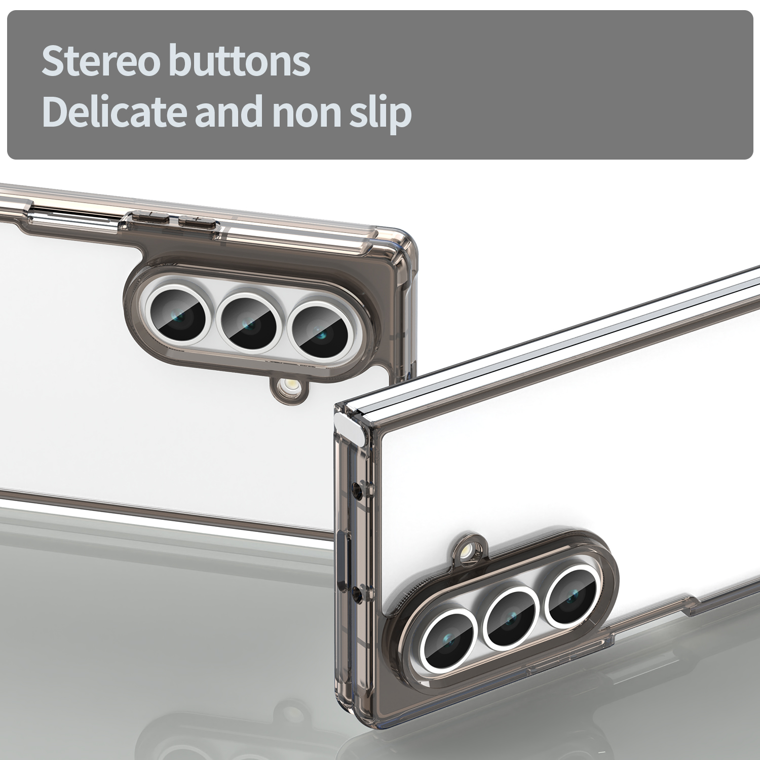 Защитный чехол с усиленными мягкими боковыми рамками серого цвета (Translucent Black) для дисплея и прозрачной задней жесткой стенкой на телефон Samsung Galaxy Fold 7 от Caseport