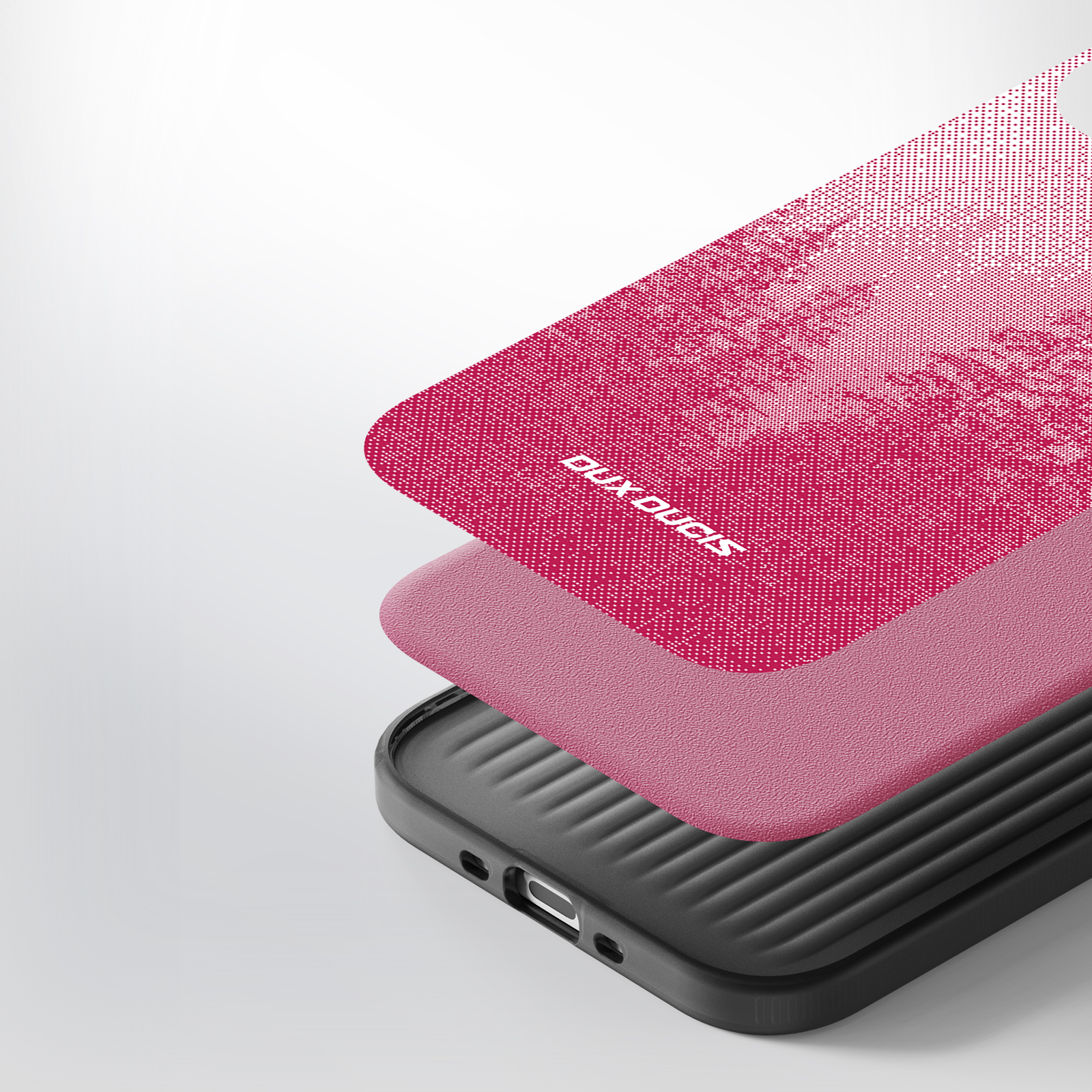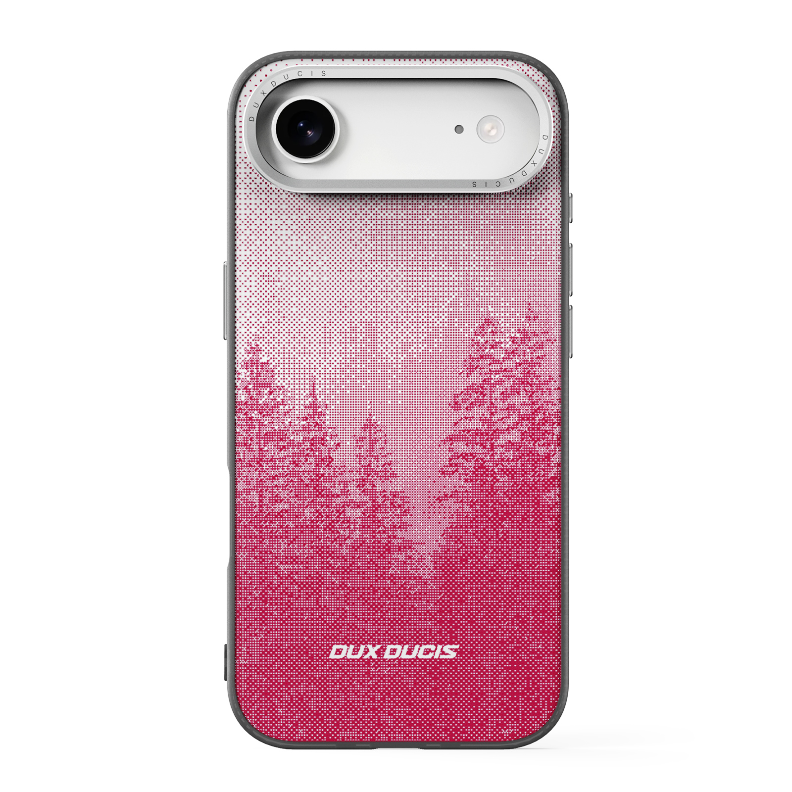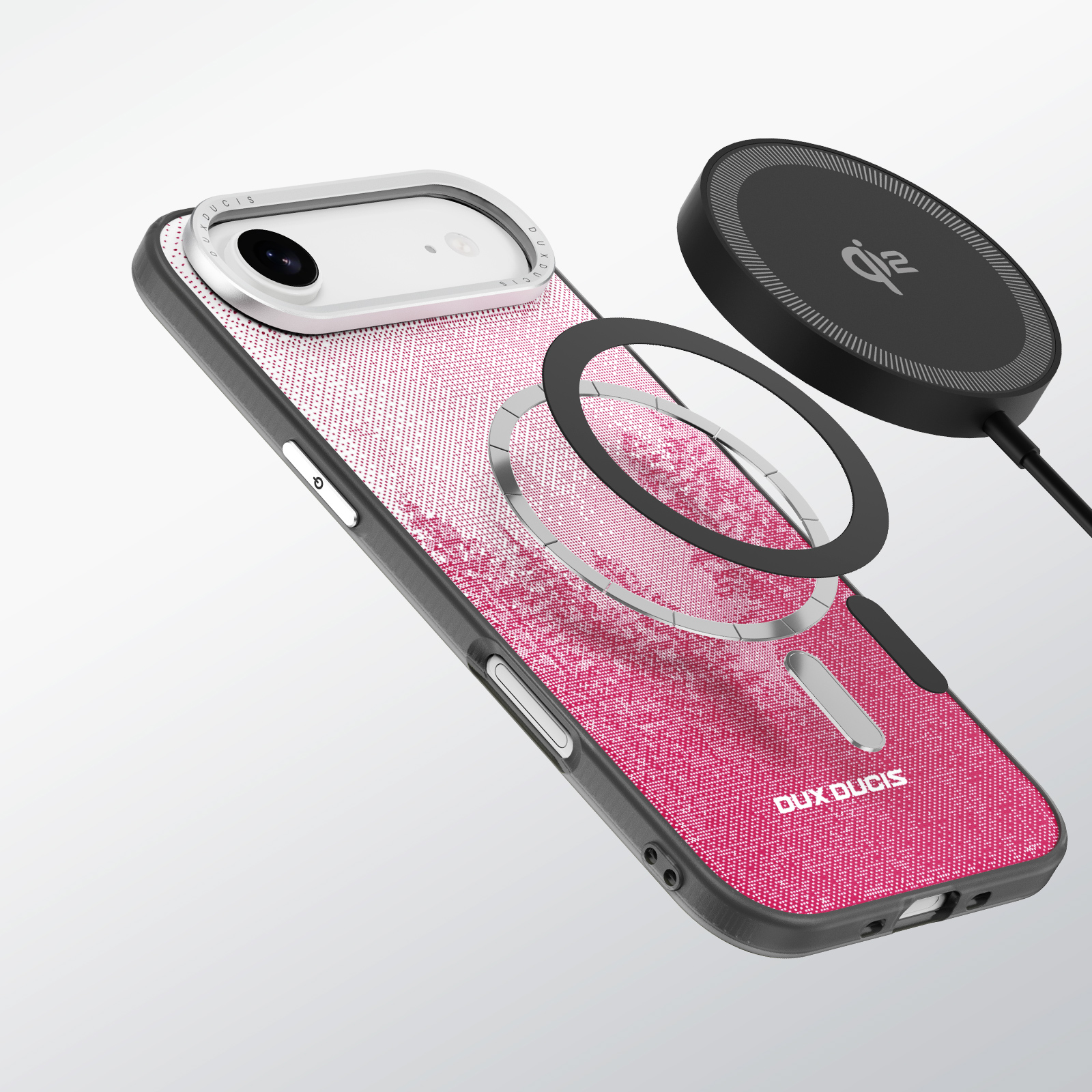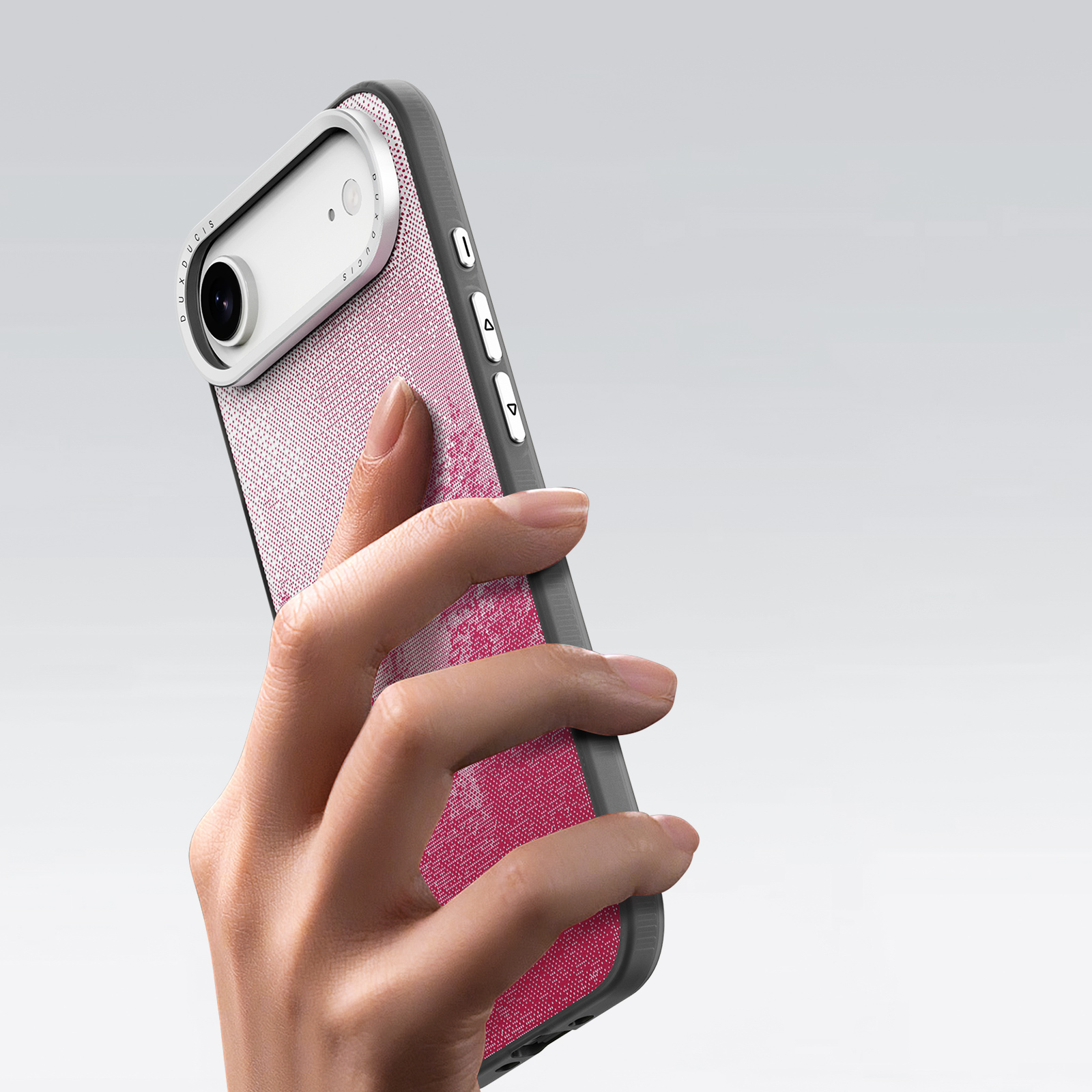 Чехол красного цвета с поддержкой беспроводной зарядки MagSage от Dux Ducis серии Moro Series Magnetic Case для смартфона iPhone Air. Текстурированный рисунок с УФ-печатью и высококачественная искусственная кожа для насыщенных визуальных и тактильных ощущений. Кнопки и кольцо камеры из алюминиевого сплава с ЧПУ-обработкой, устойчивые к износу и выцветанию.