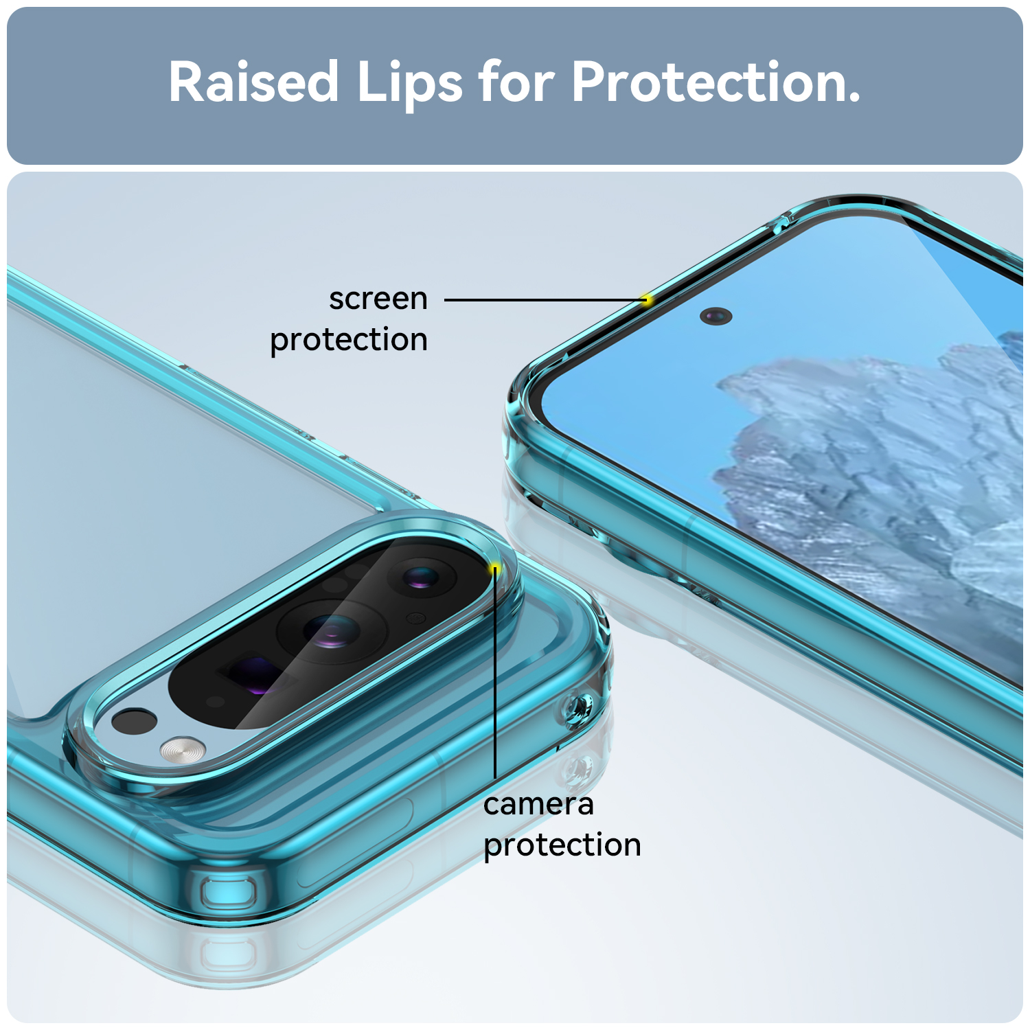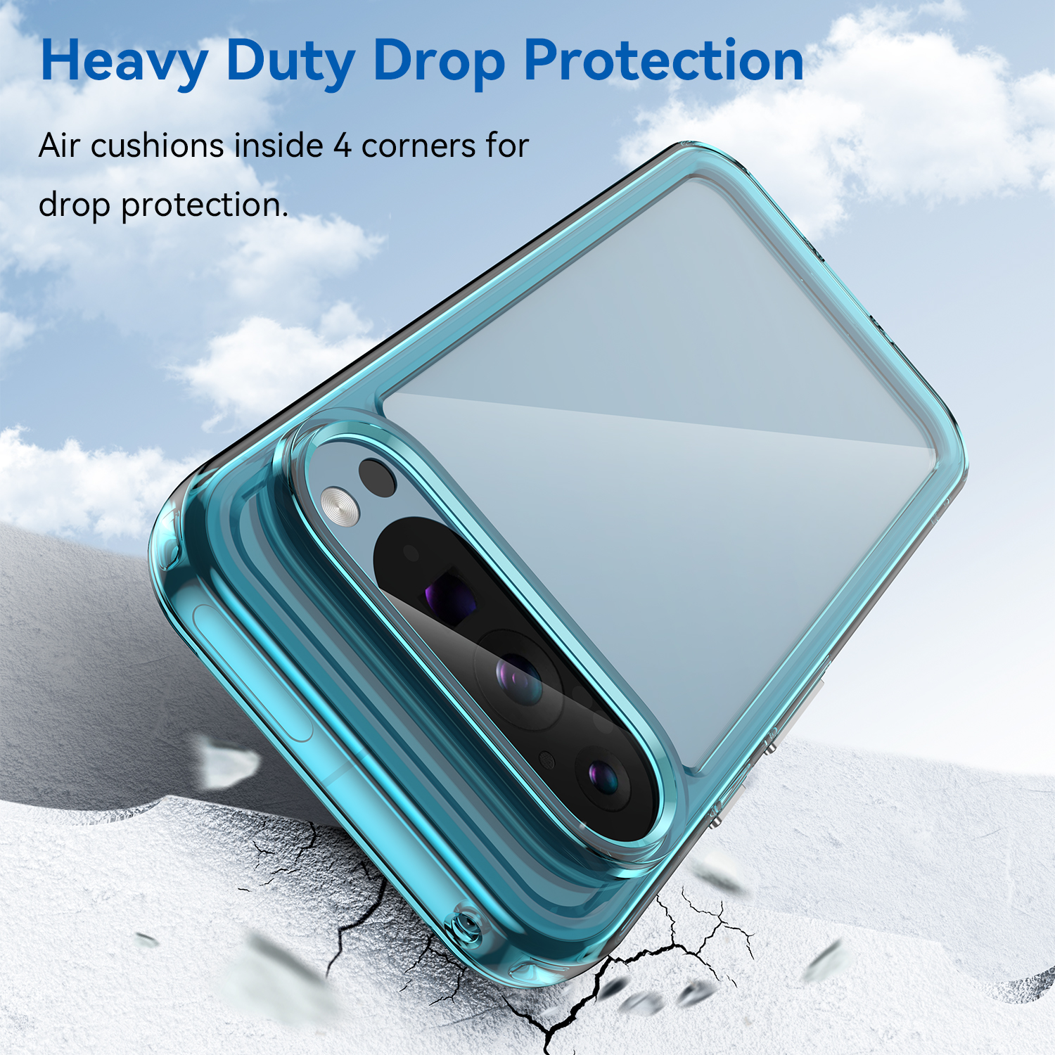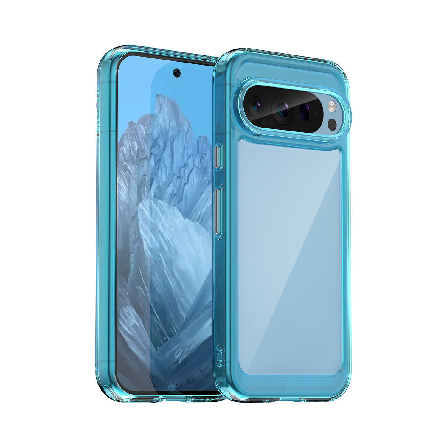 Защитный противоударный чехол с усиленными боковыми рамками бирюзового цвета для дисплея на телефон Google Pixel 9 Pro от Caseport, серия Fusion