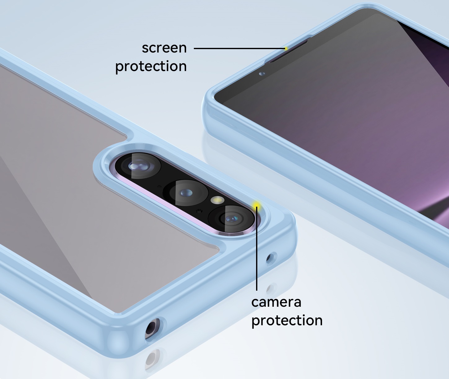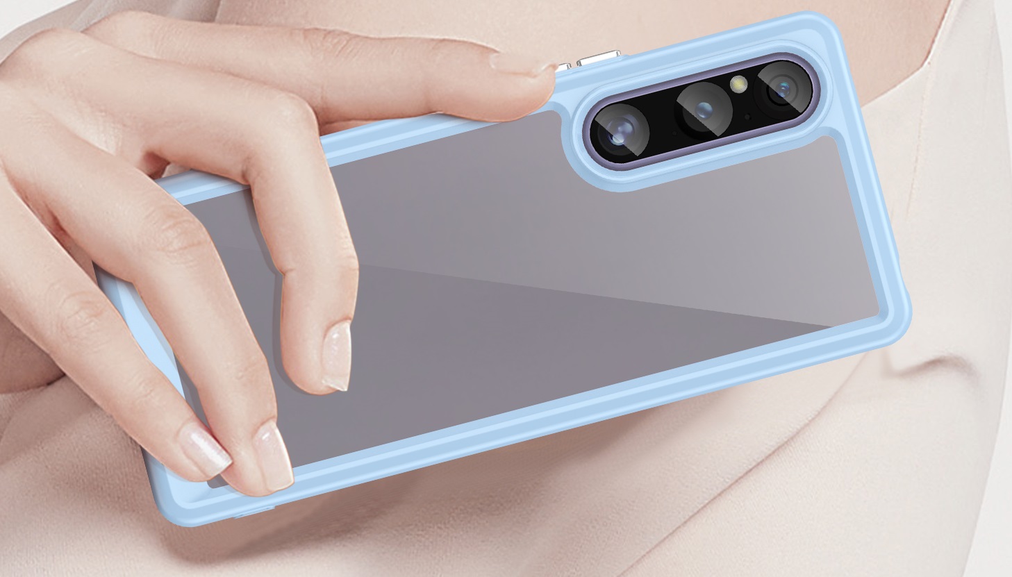 Защитный, противоударный чехол с усиленными боковыми рамками синего цвета для дисплея на телефон Sony Xperia 1-5, Mark 5 с 2023 года от Caseport, серия Fusion