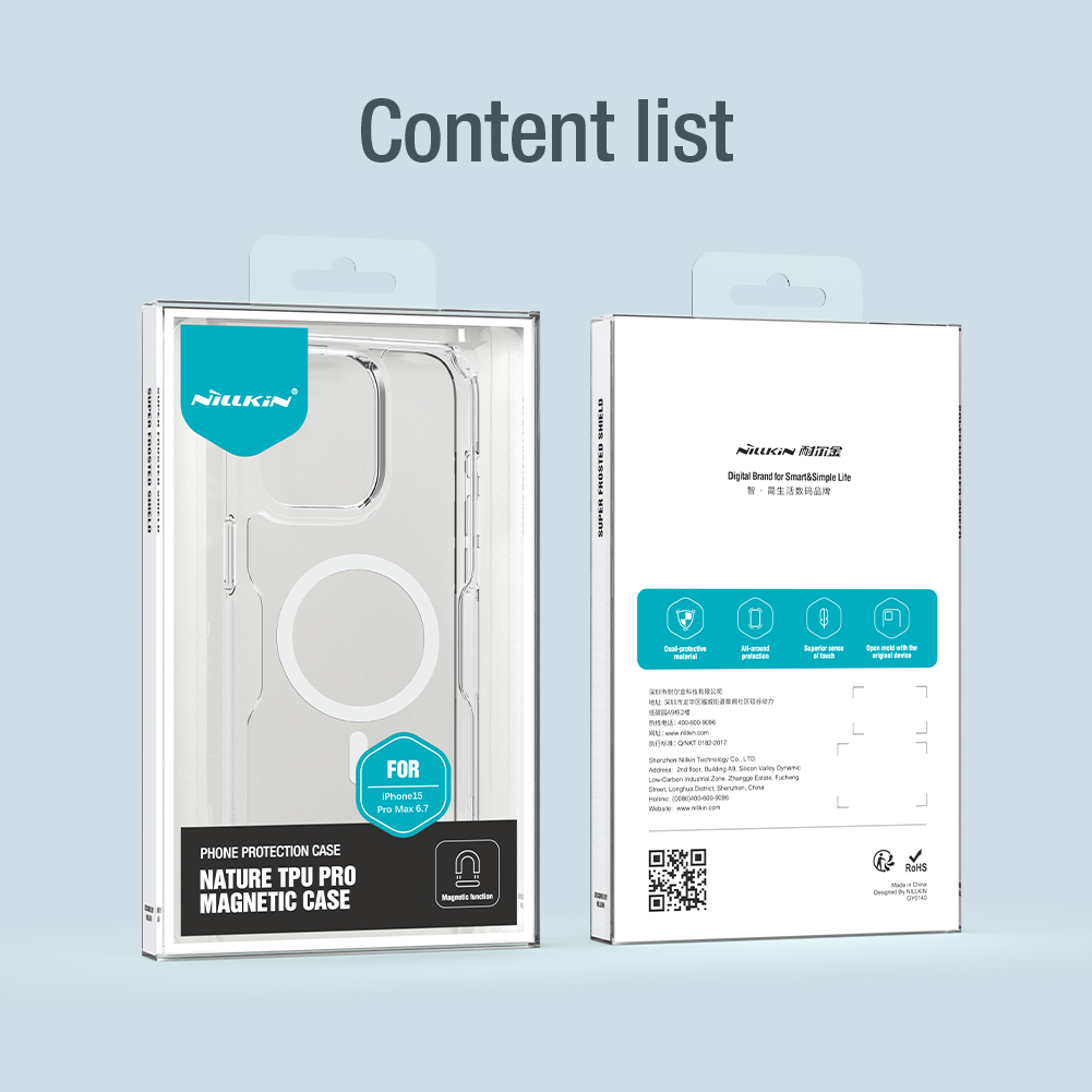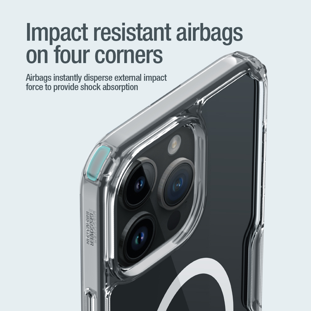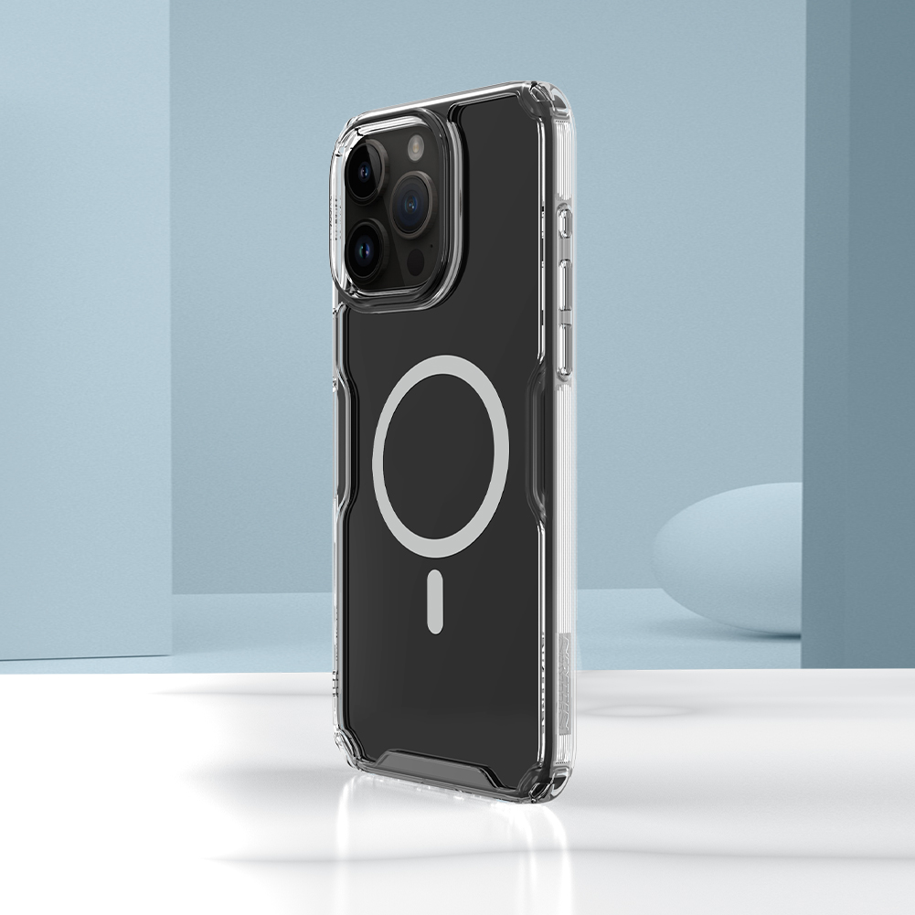 Оригинальный усиленный чехол от Nillkin серии Nature TPU Pro Magnetic Case для смартфона Айфон 15 Про Макс. Изготовлен из высококачественного термополиуретана, обладает увеличенными подушками безопасности по углам и функцией поддержки магнитной беспроводной зарядки MagSafe. Чехол специально разработан для iPhone 15 Pro Max и имеет прозрачный цвет. Бренд Nillkin гарантирует качество продукта, а производство осуществляется в Китае. Этот чехол является незаменимым аксессуаром для вашего смартфона, обеспечивая ему надежную защиту и возможность использования магнитной беспроводной зарядки MagSafe. Оригинальный усиленный чехол от Nillkin c увеличенными подушками по углам и функцией поддержки магнитной беспроводной зарядки MagSafe серии Nature TPU Pro Magnetic Case для смартфона Айфон 15 Про Макс