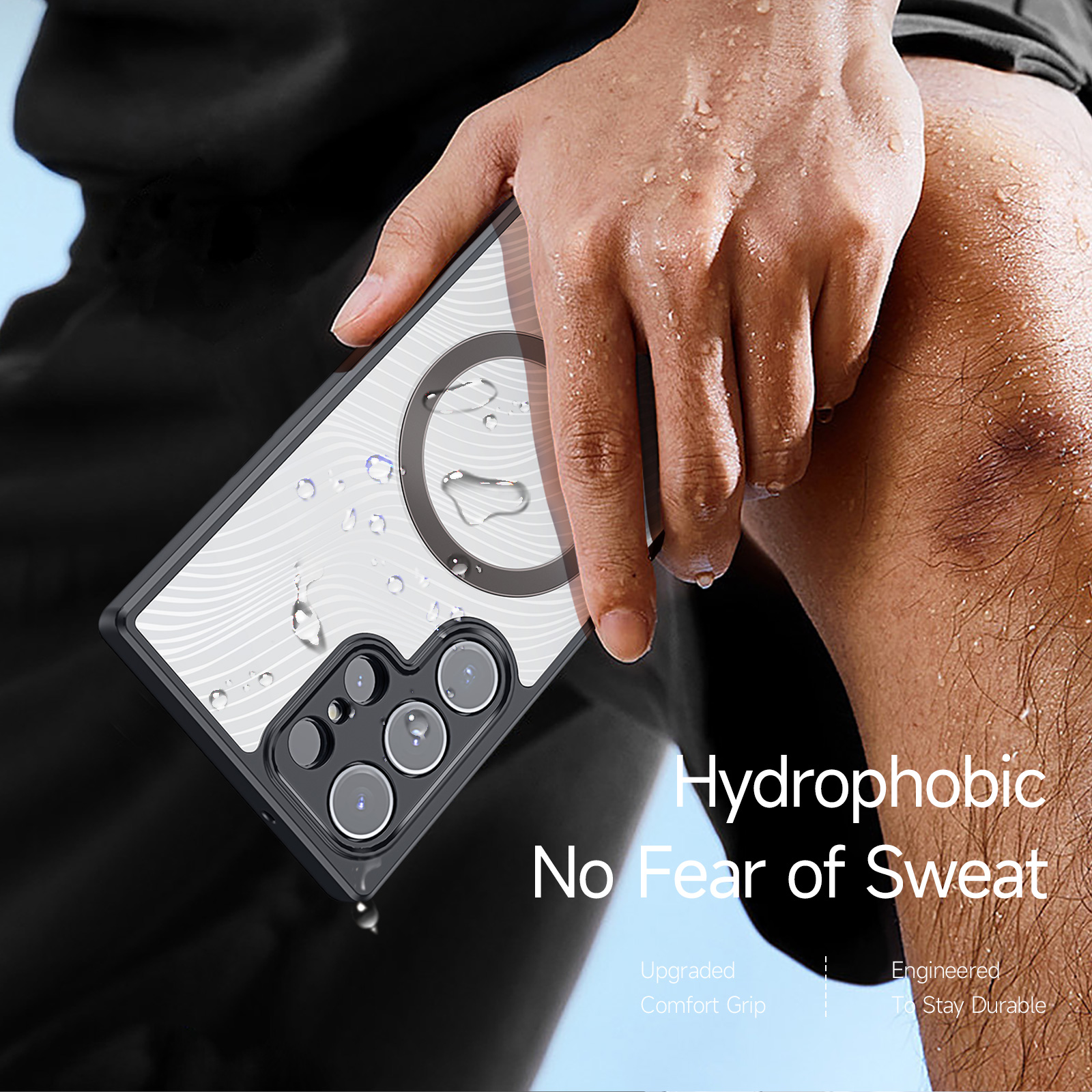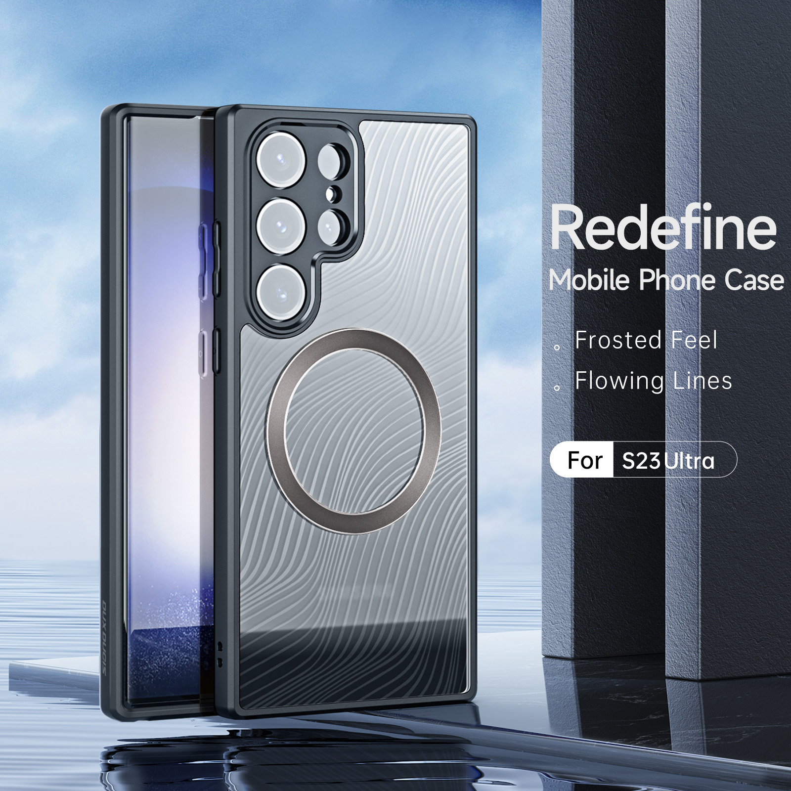 Тонкий чехол с поддержкой беспроводной зарядки MagSage от Dux Ducis серии Aimo Mag для смартфона Samsung Galaxy S23 Ultra изготавливается из экологичных материалов путем высокоточного литья под давление с высокой температурой.