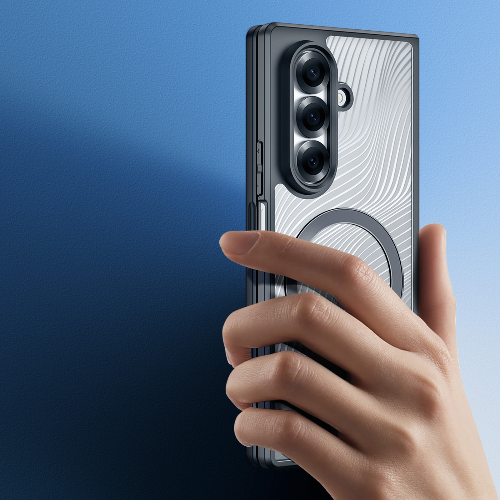 Тонкий чехол с поддержкой беспроводной зарядки MagSage от Dux Ducis серии Aimo Mag для смартфона Samsung Galaxy Z Fold 7 изготавливается из экологичных материалов путем высокоточного литья под давление с высокой температурой.