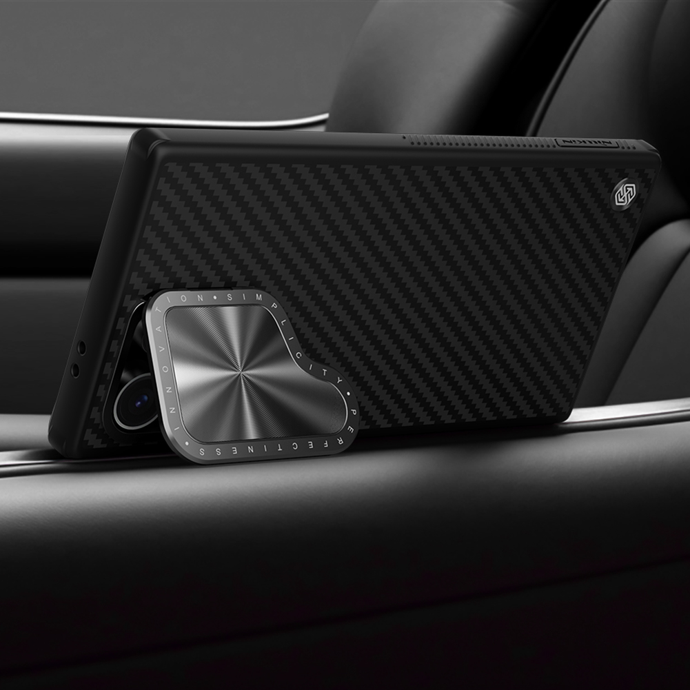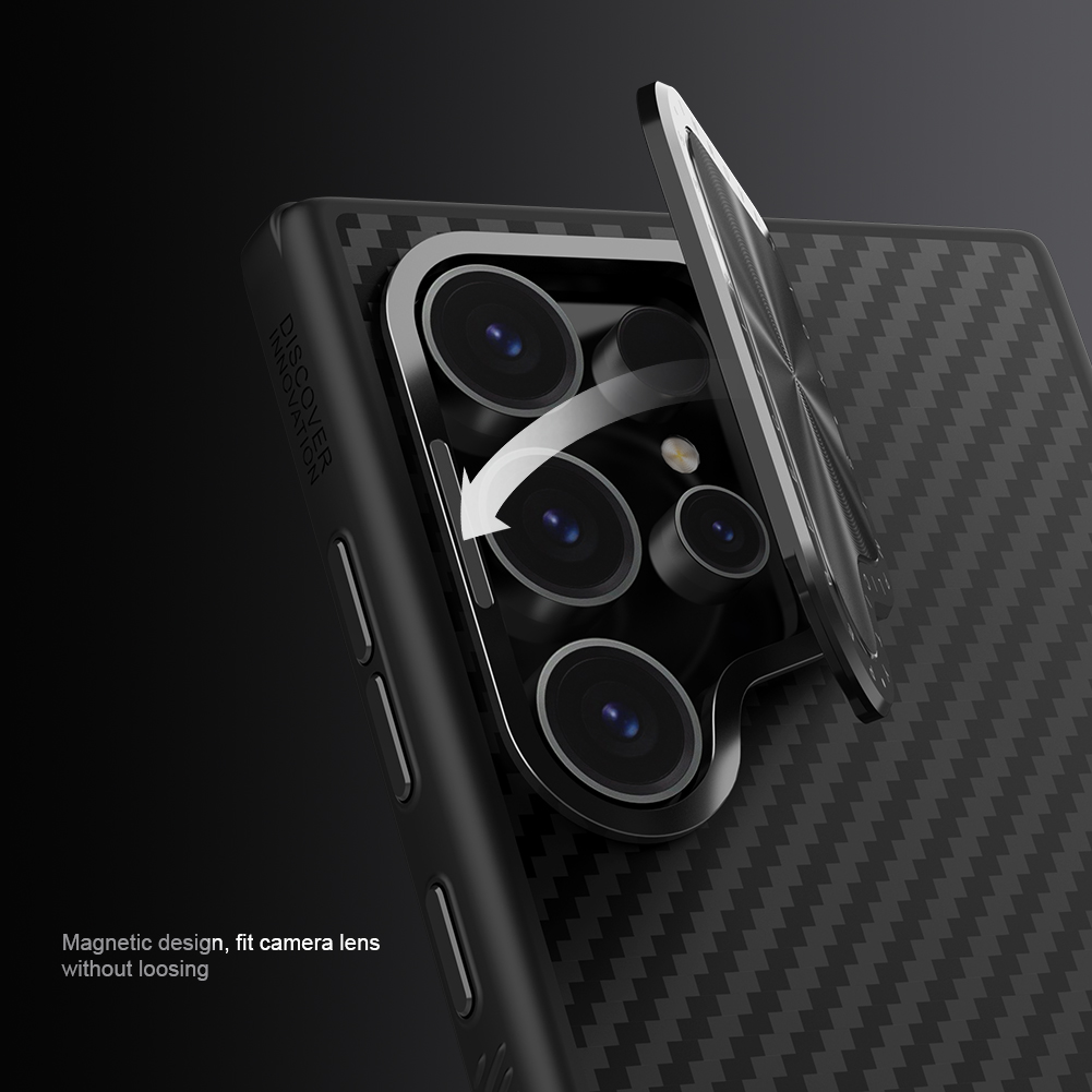 Чехол из арамидного карбона (кевлар) (широко известного в индустрии материалов как "black gold") с металлической откидной крышкой для камеры и поддержкой MagSafe от Nillkin серии CarboProp Magnetic для телефона Samsung Galaxy S24 Ultra.