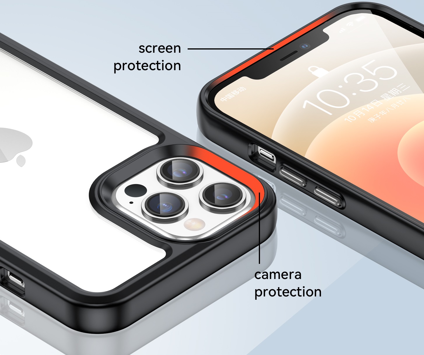 Специальные бортики на чехле приподнимают смартфон, не давая соприкасаться экрану и камере с плоскими поверхностями.