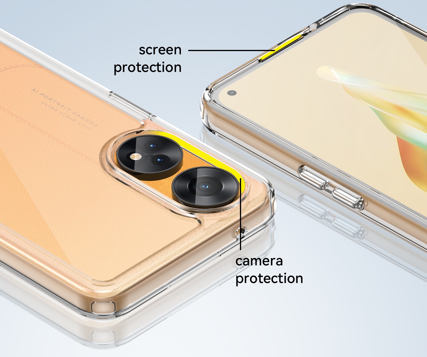 Специальные бортики на чехле приподнимают смартфон, не давая соприкасаться экрану и камере с плоскими поверхностями.