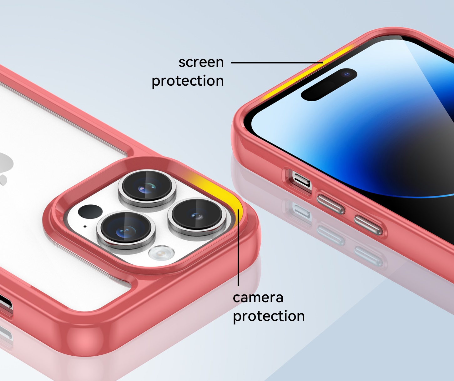 Защитный, противоударный чехол с усиленными прозрачными боковыми рамками красного цвета для дисплея на телефон iPhone 14 Pro Max от Caseport, серия Fusion