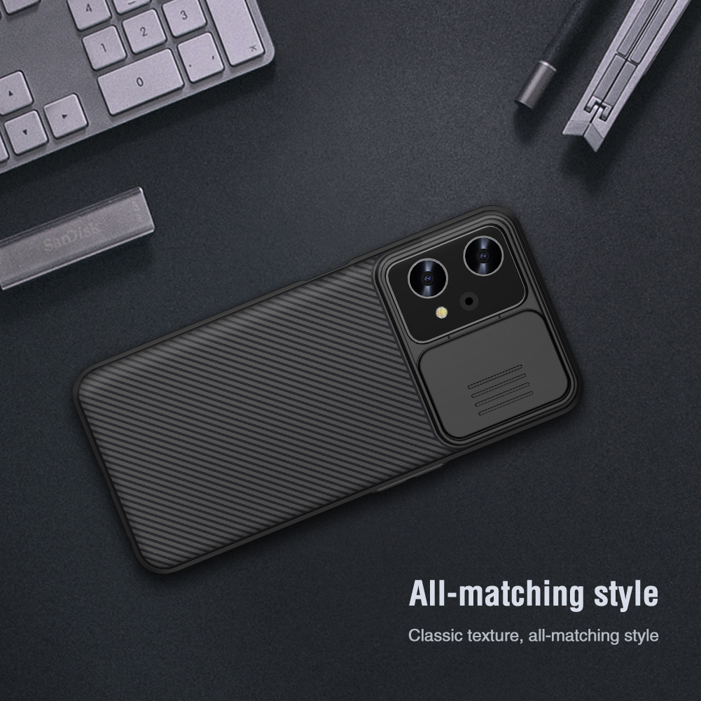 Противоударный чехол черного цвета с защитной крышкой задней камеры серии CamShield Case от Nillkin для смартфона OnePlus Nord CE2 Lite 5G создан для любителей активного отдыха.