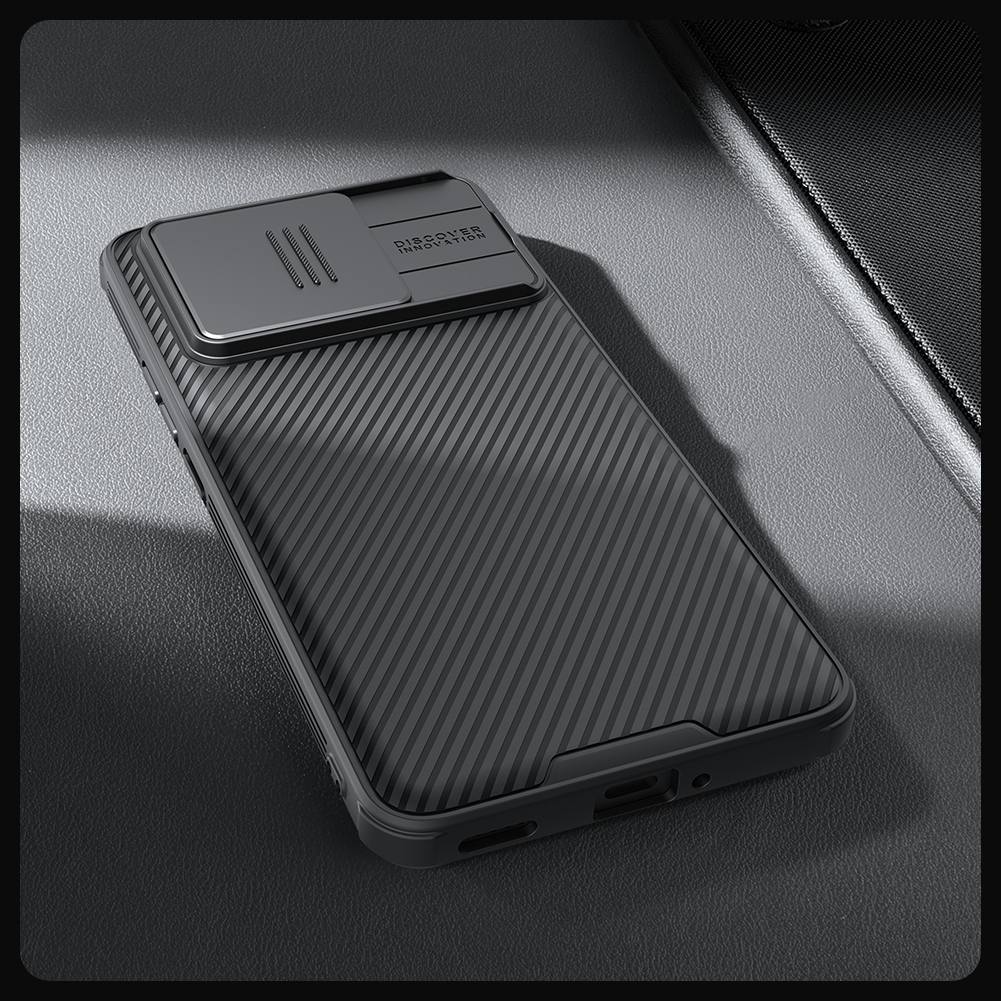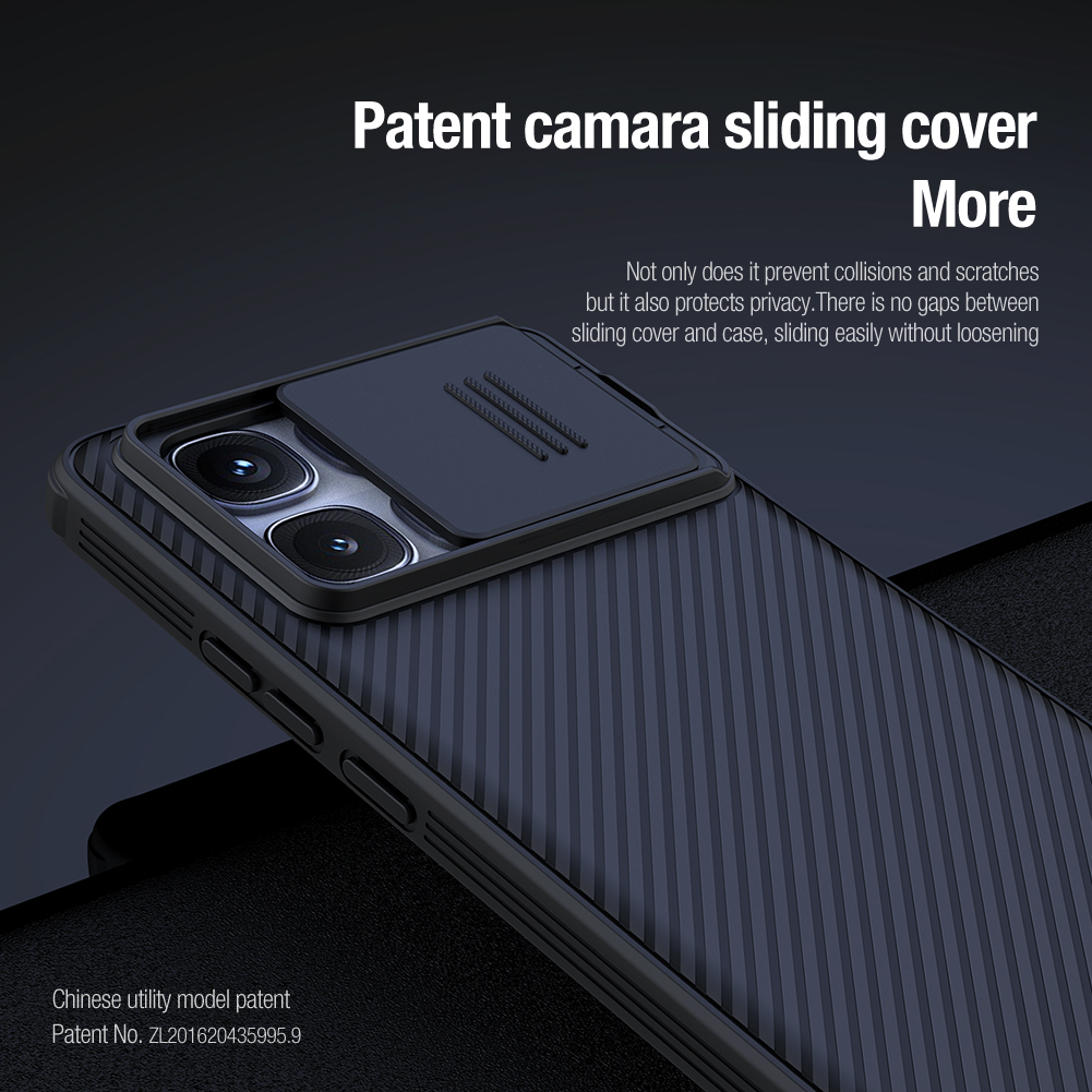 Противоударный чехол черного цвета с защитной шторкой задней камеры от Nillkin серии CamShield Pro Case для телефона Xiaomi Redmi K70 Ultra создан для любителей активного отдыха.