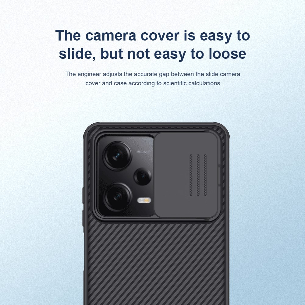Противоударный чехол черного цвета с защитной шторкой задней камеры от Nillkin серии CamShield Pro Case для телефона Xiaomi Redmi Note 12 Pro и POCO X5 Pro 5G создан для любителей активного отдыха.